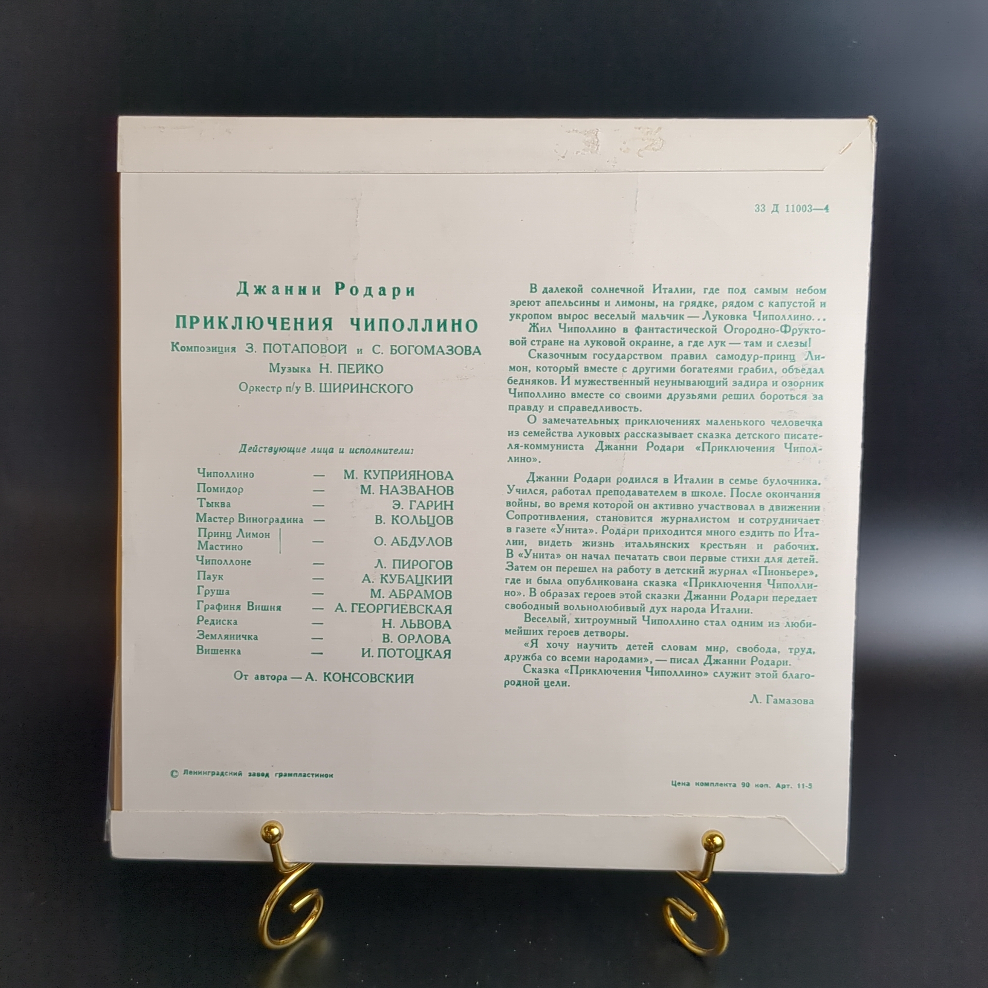 Приключения Чиполино по сказе Джанни Родари. Виниловая пластинка 10 дюймов. Мелодия СССР