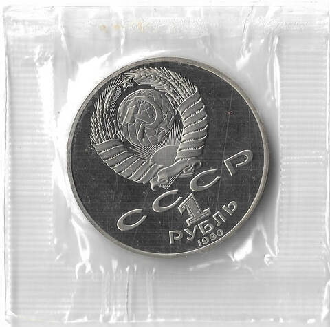(Proof) 1 рубль 1990 год ''130 лет со дня рождения А. П. Чехова'', в родной запайке