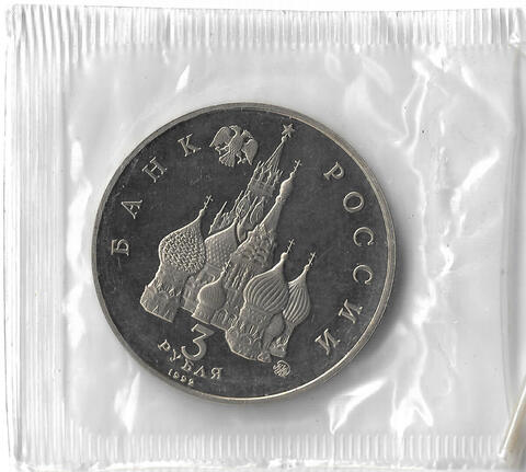 (Proof) 3 рубля 1992 ММД ''Победа демократических сил России 19-21 августа'', в родной запайке