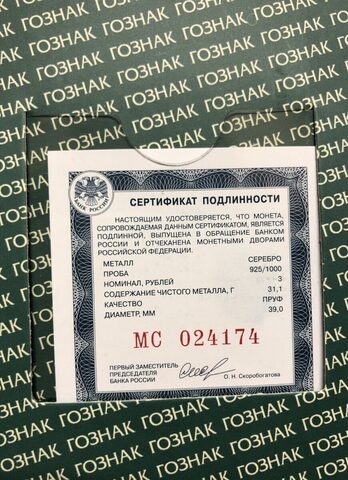(Proof) 3 рубля ''200 лет со дня основания Экспедиции заготовления государственных бумаг. Гознак''. 2018 год, специальное исполнение в оригинальном буклете