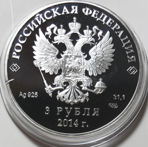 (Proof) 3 рубля 2014 год. Керлинг - Олимпийские зимние игры в Сочи, есть ударчик.
