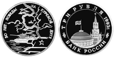 (Proof) 3 рубля 50-летие Победы на Курской дуге 1993 год