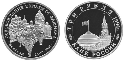 (Proof) 3 рубля "Освобождение Европы от фашизма. Белград" 1995 год