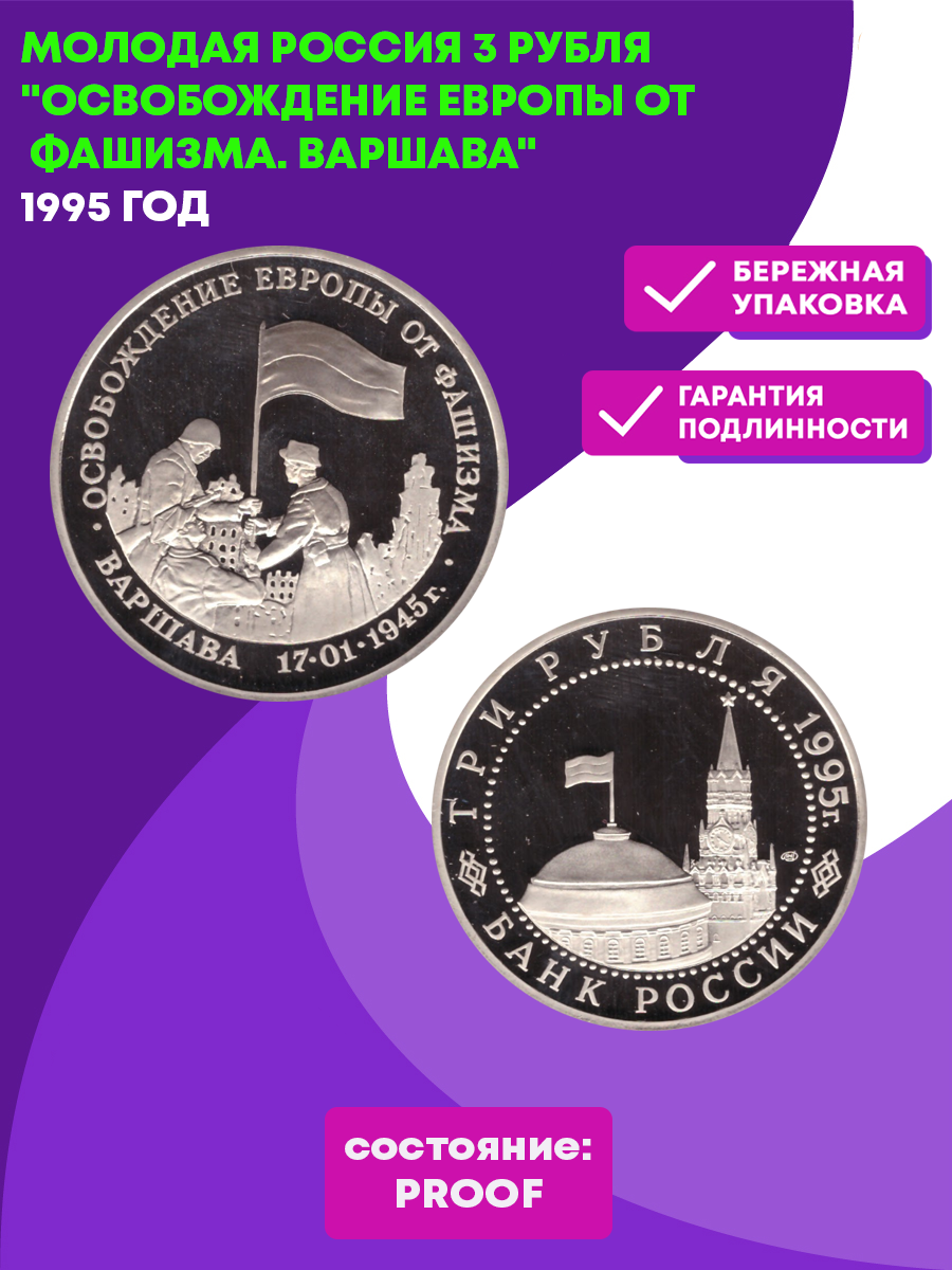 (Proof) 3 рубля "Освобождение Европы от фашизма. Варшава" 1995 год