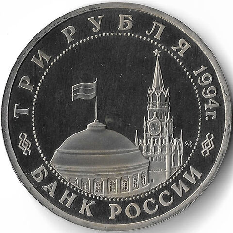 (Proof) 3 рубля ''Партизанское движение в Великой Отечественной войне'' 1994 год №1