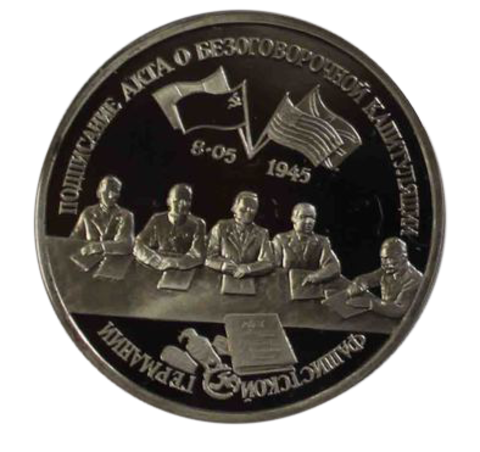 (Proof) 3 рубля Подписание акта о безоговорочной капитуляции фашистской Германии 1995 года