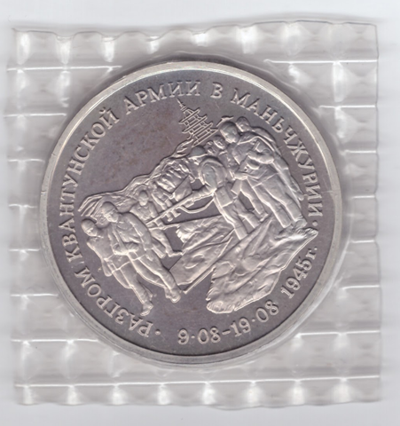 (Proof) 3 рубля "Разгром советскими войсками Квантунской армии в Маньчжурии" 1995 год