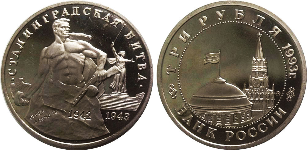 (Proof) 3 рубля Сталинградская битва 1993 года