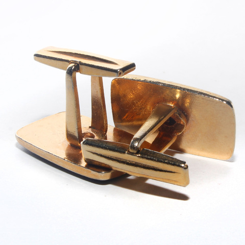 Прямоугольные запонки с черной эмалью и золотистым цветочно кружевным рисунком.