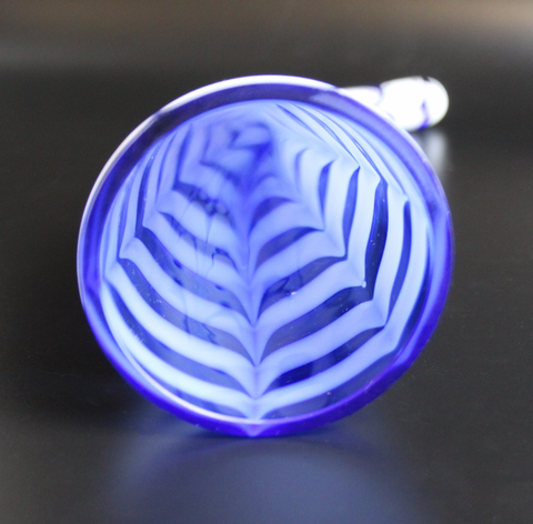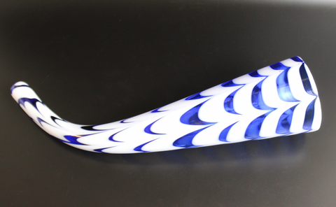 Рог изобилия цветное стекло синий и молочный цвет, длина - 28 см, СССР 1970-1990 гг. Рог для напитков. Имеется небольшой на основании.