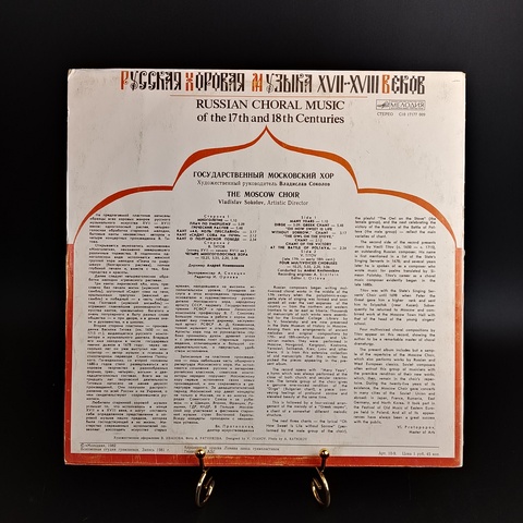 Русская хоровая музыка XVII-XVIII веков виниловая пластинка, Государственный Московский Хор, худ.рук Владислав Соколов, классика, LP, винтаж, Мелодия СССР 1982 год