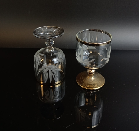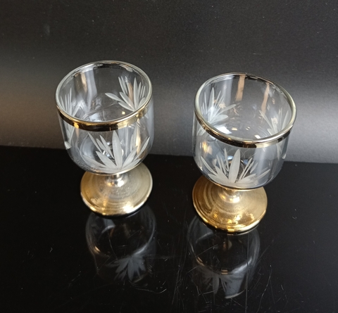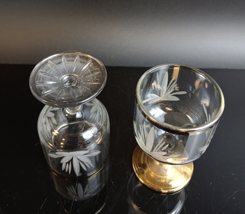 Рюмки 2 штуки стекло цветное, узор цветы,25 мл., высота - 6 см, винтаж СССР 1970-1990 гг. Диаметр верха - 3.5 см. Присутствуют следы использования - состояние на фото