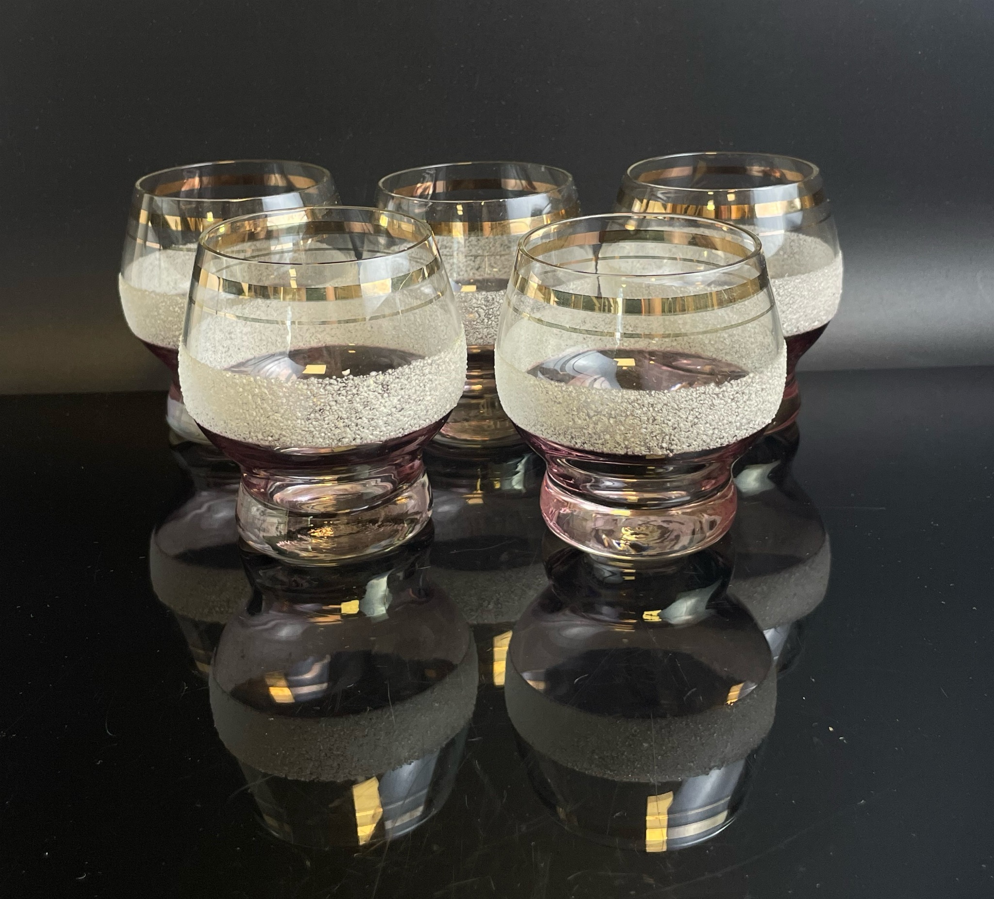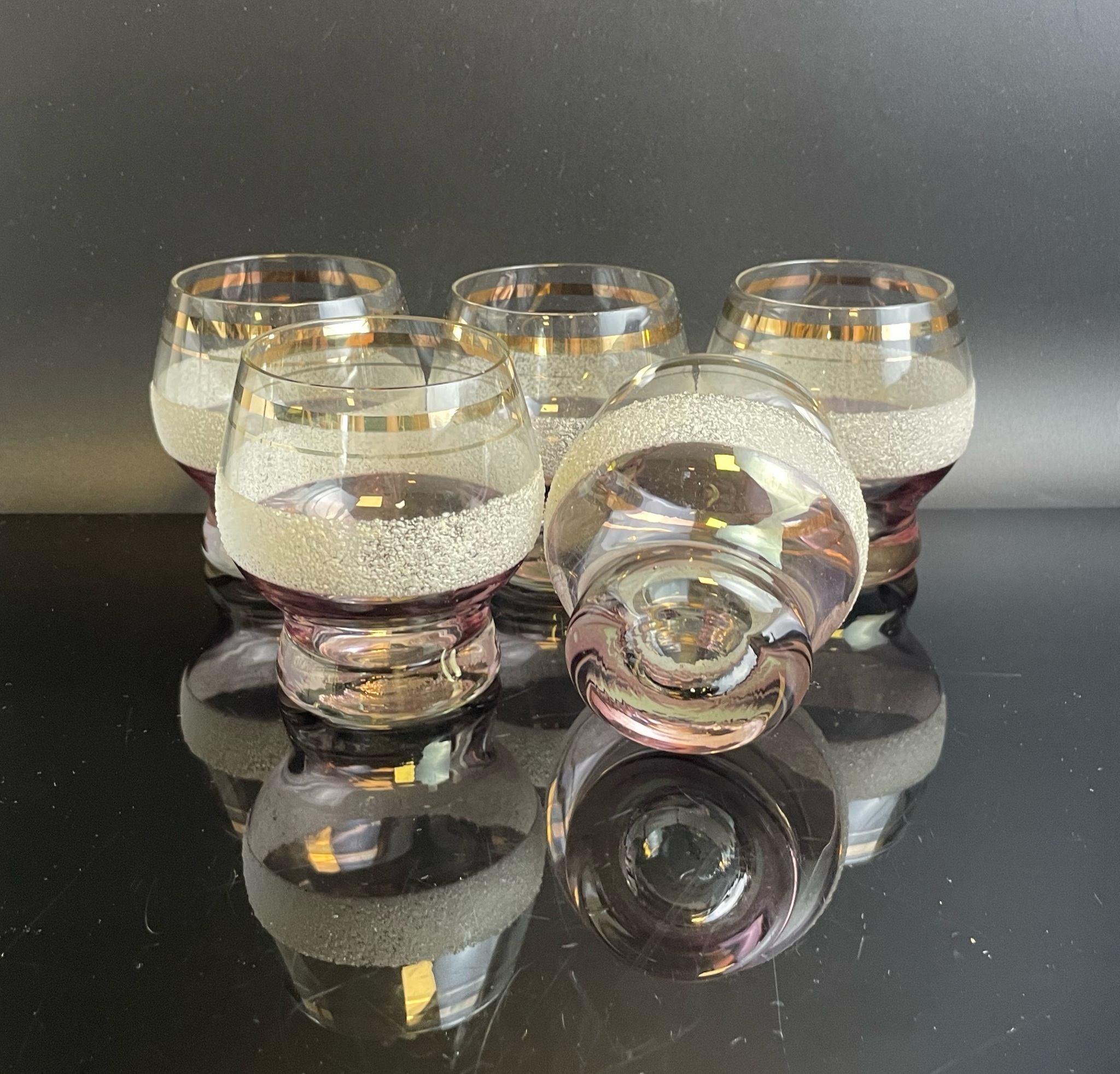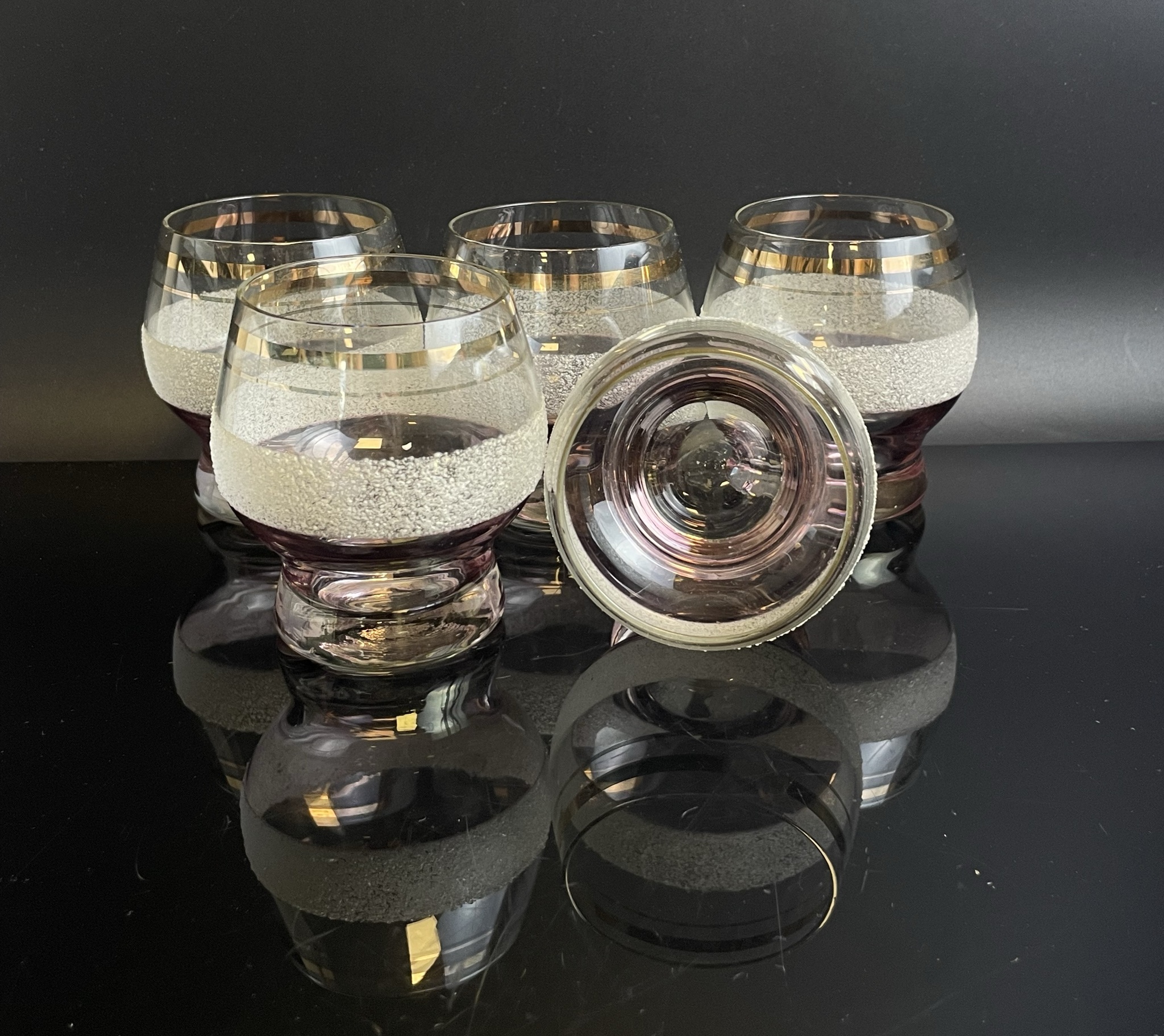 Рюмки - бочки стекло набор из 5 штук, высота- 8 см, 150 мл., насыпное белое стекло и золочение, винтаж, редкие, СССР 1970-1990 гг. Присутствуют следы использования- состояние на фото