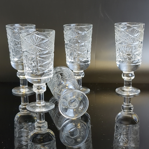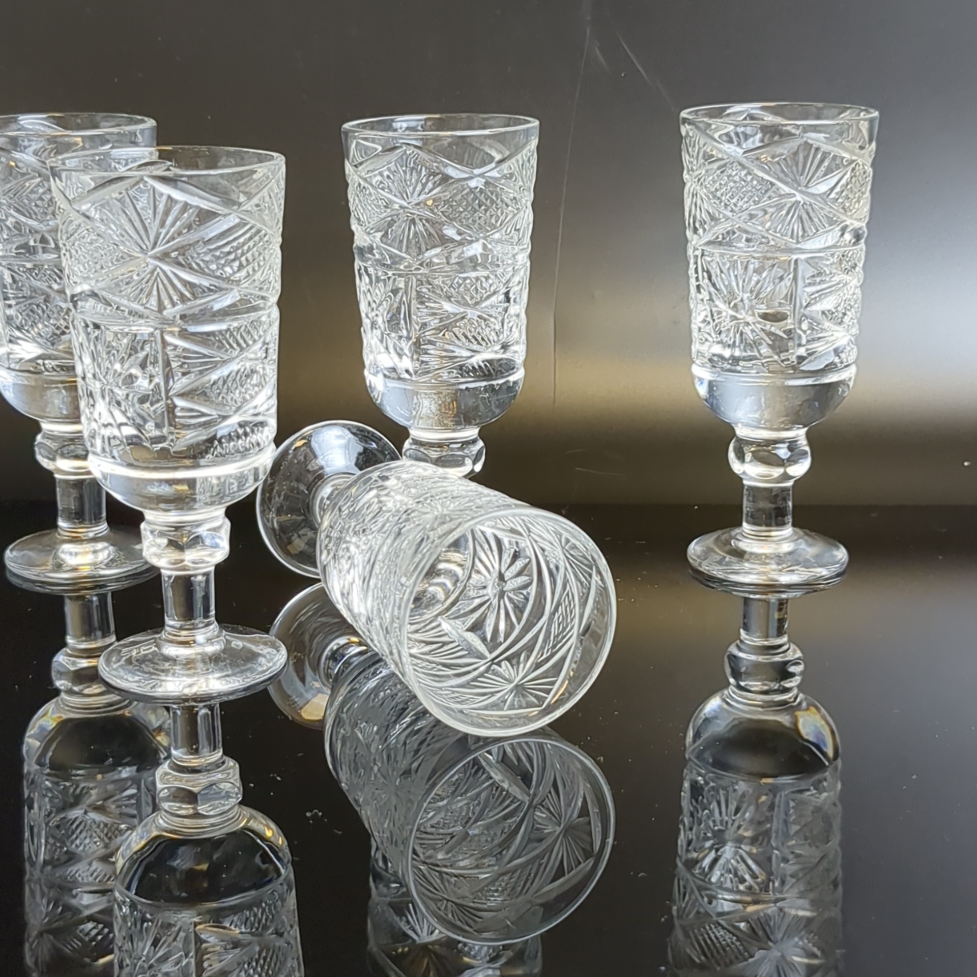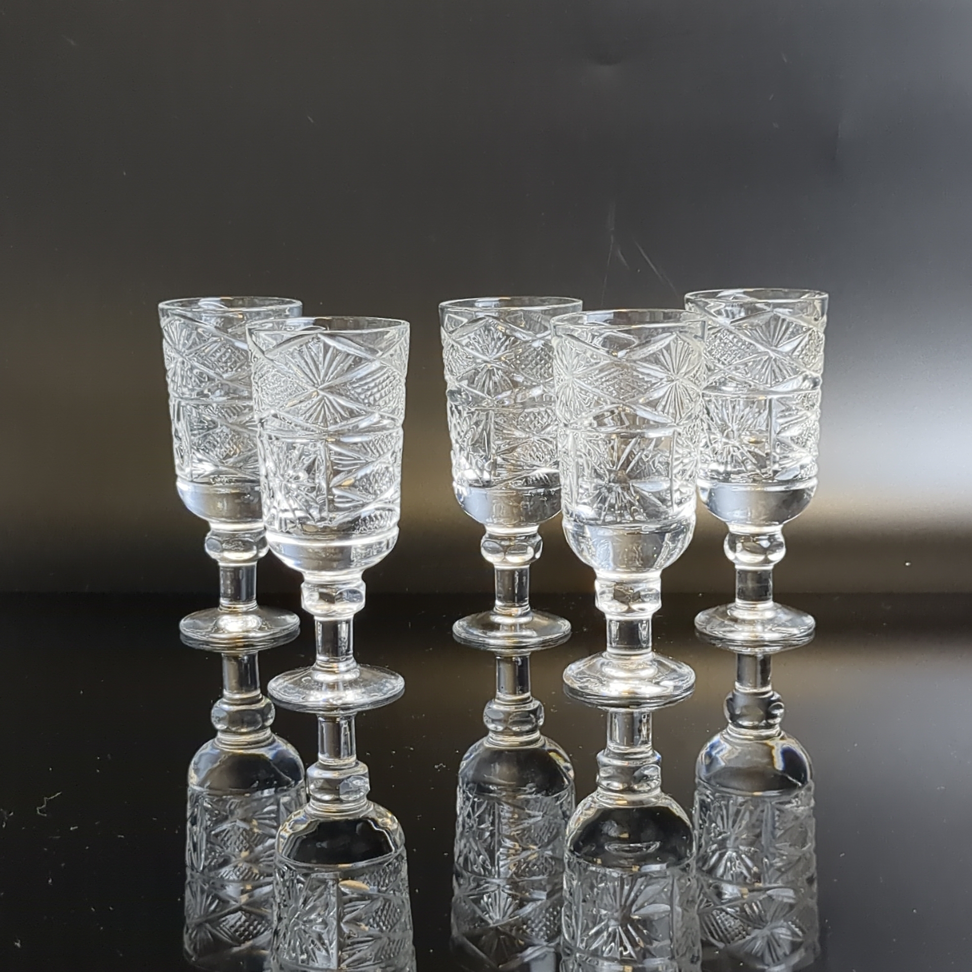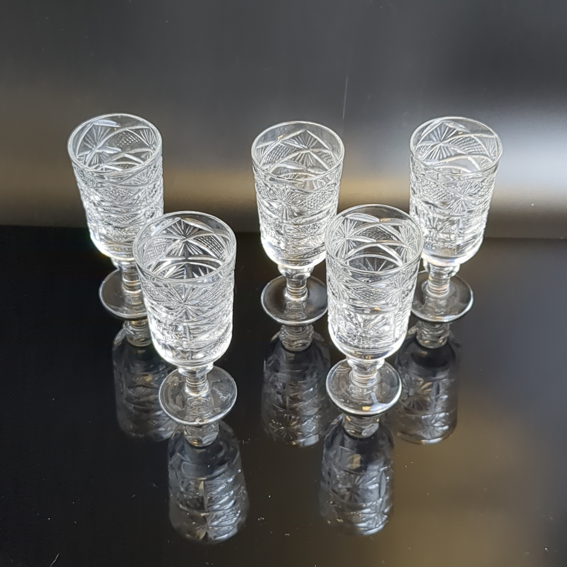 Рюмки хрустальные набор из 5 штук , высота- 9.5 см, изящные, алмазная грань, винтаж СССР 1960-1990 гг. Состояние на фото