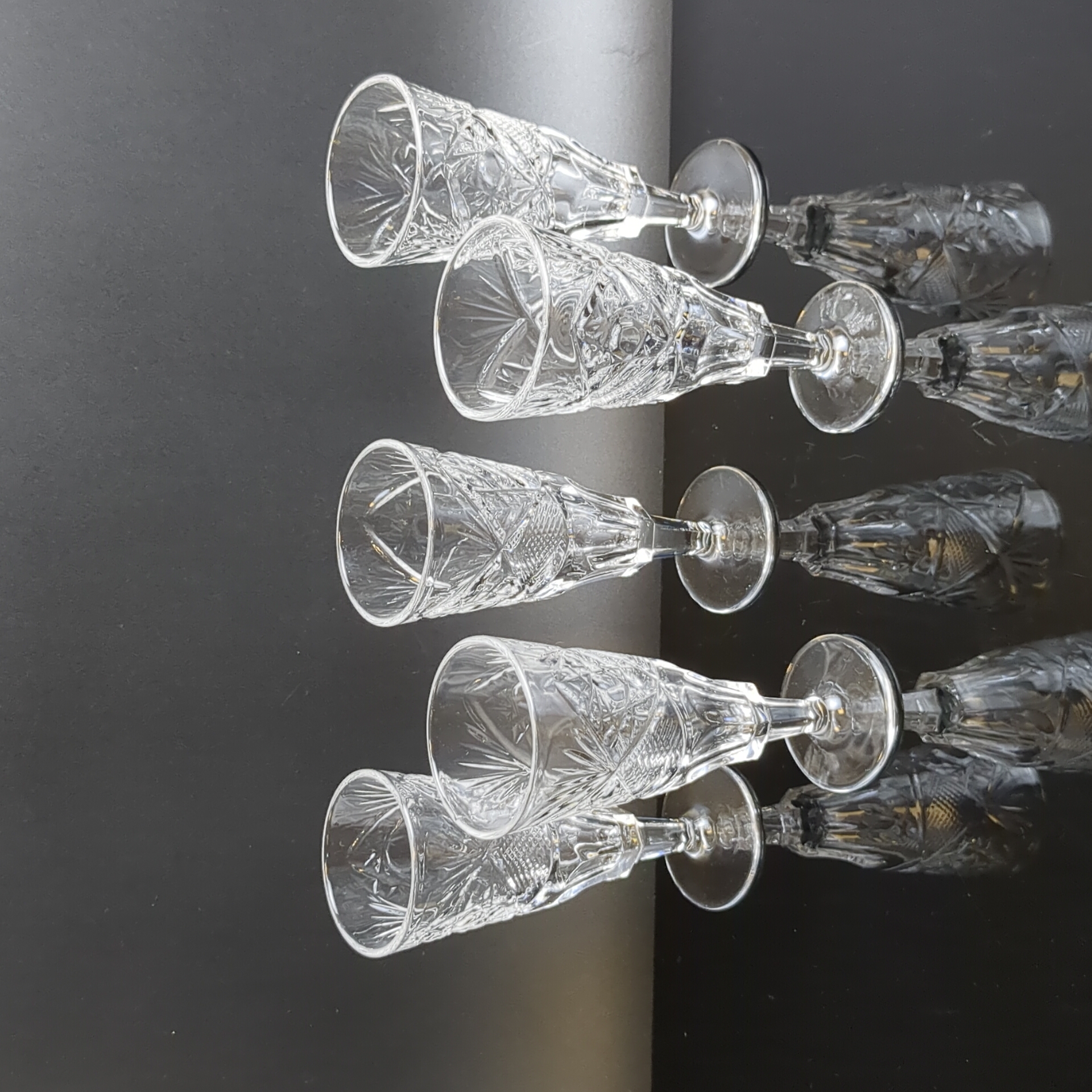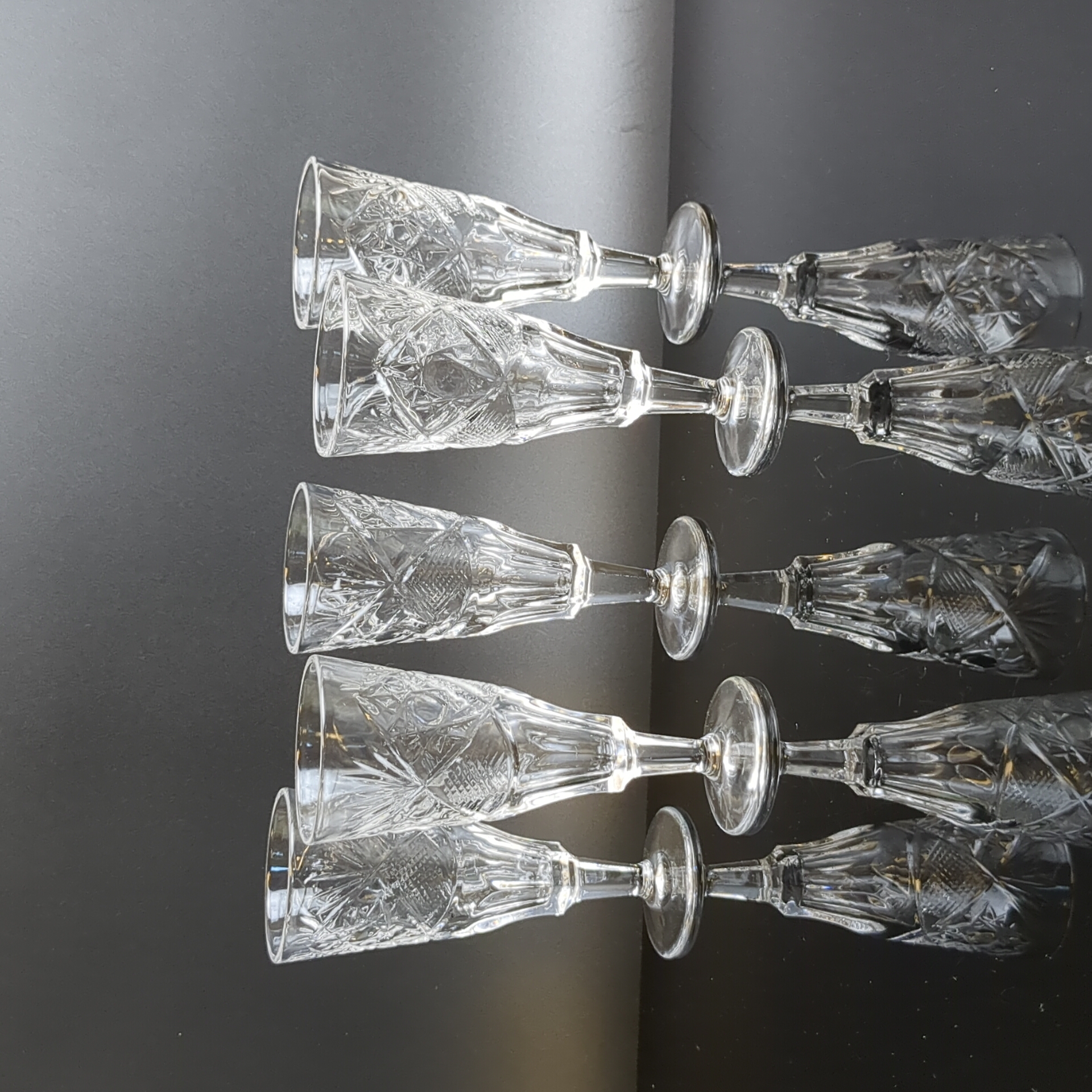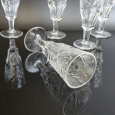 Набор хрустальных рюмок из 5 штук - винтажная роскошь в вашем доме. Высота - 10.5 см. Состояние на фото.
