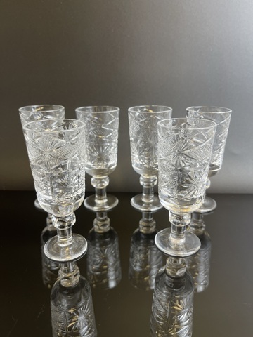 Рюмки хрустальные набор из 6 штук , 9 см, изящные, алмазная грань, винтаж СССР 1960-1990 гг. Сервантное хранение,  состояние на фото