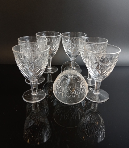 Рюмки хрустальные набор из 7 штук, "Искры", на ножке, 50 мл., алмазная грань, винтажные СССР 1960-1990 гг. Высота - 9 см. Присутствуют следы использования - состояние на фото