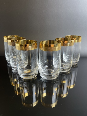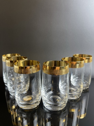 Рюмки изящные Bohemia набор из 6 штук, стеклянные с золочением, 8.5 см, винтаж, Чехословакия , времен СССР 1970-1990 гг. Имеются этикетки на дне у нескольких рюмок. Сервантное хранение, состояние на фото