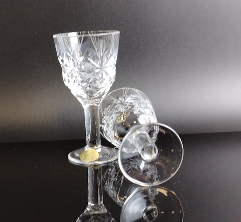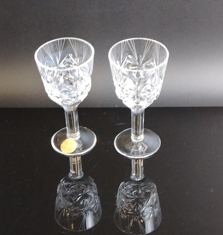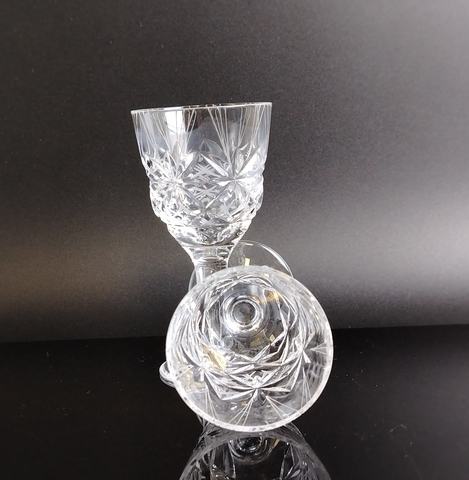 Рюмки на 2 персоны хрустальные "Комета" автор Е. В. Яновская, алмазная грань, геометрический орнамент, ЛЗХС, винтаж СССР 1970-1980 гг. Высота- 9.2 см. Состояние и комплектация на фото.