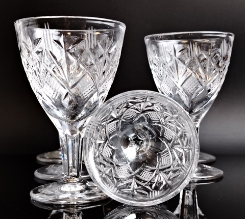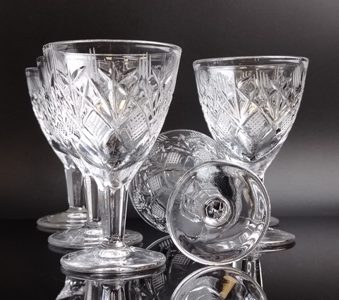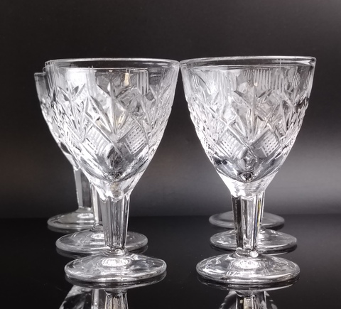 Рюмки на ножках набор из 6 штук, хрусталь ДХЗ, алмазная грань, высота - 9 см, 50 мл., геометрический орнамент, винтаж СССР 1970-1990 гг. Дятьковский хрусталь. Состояние на фото