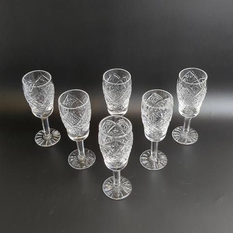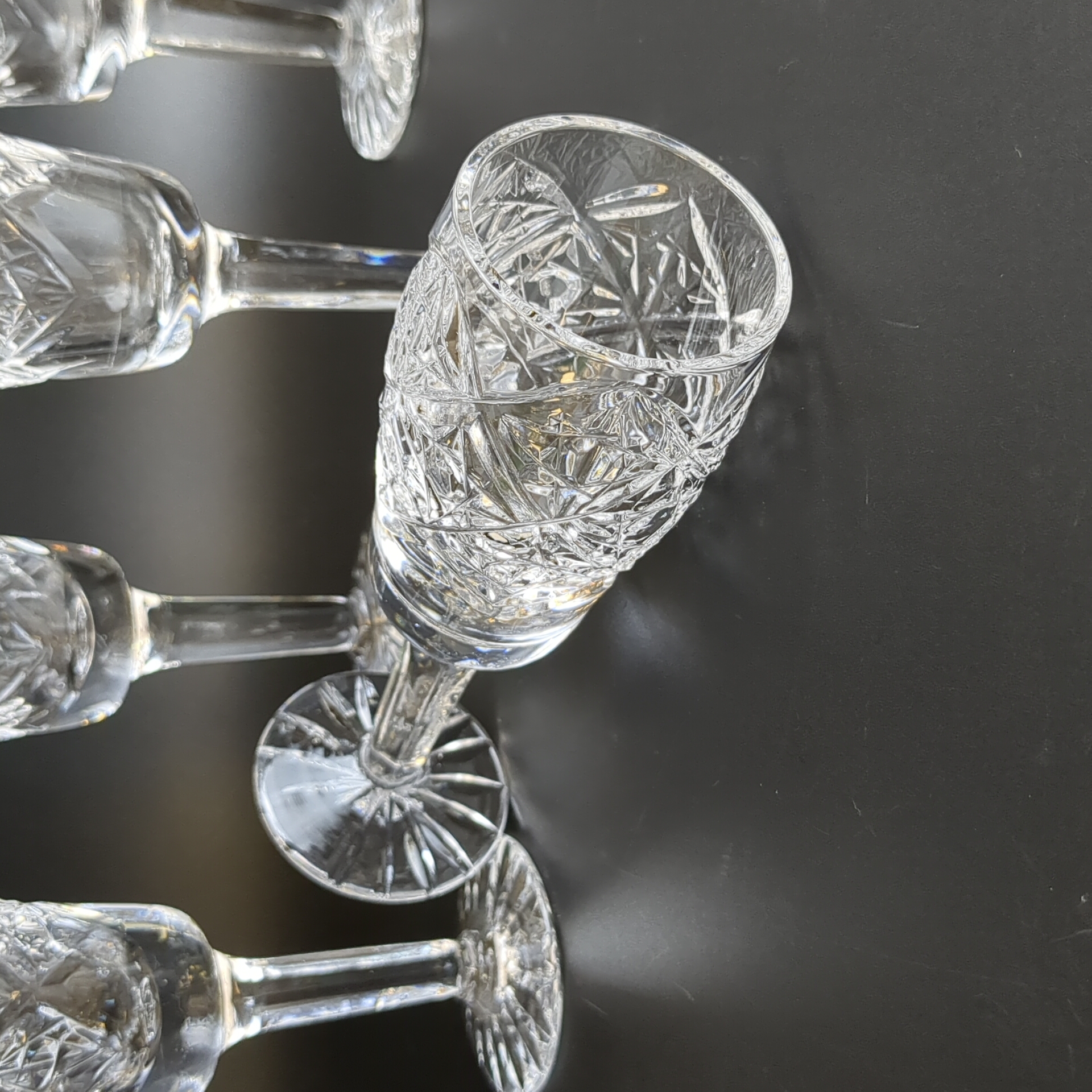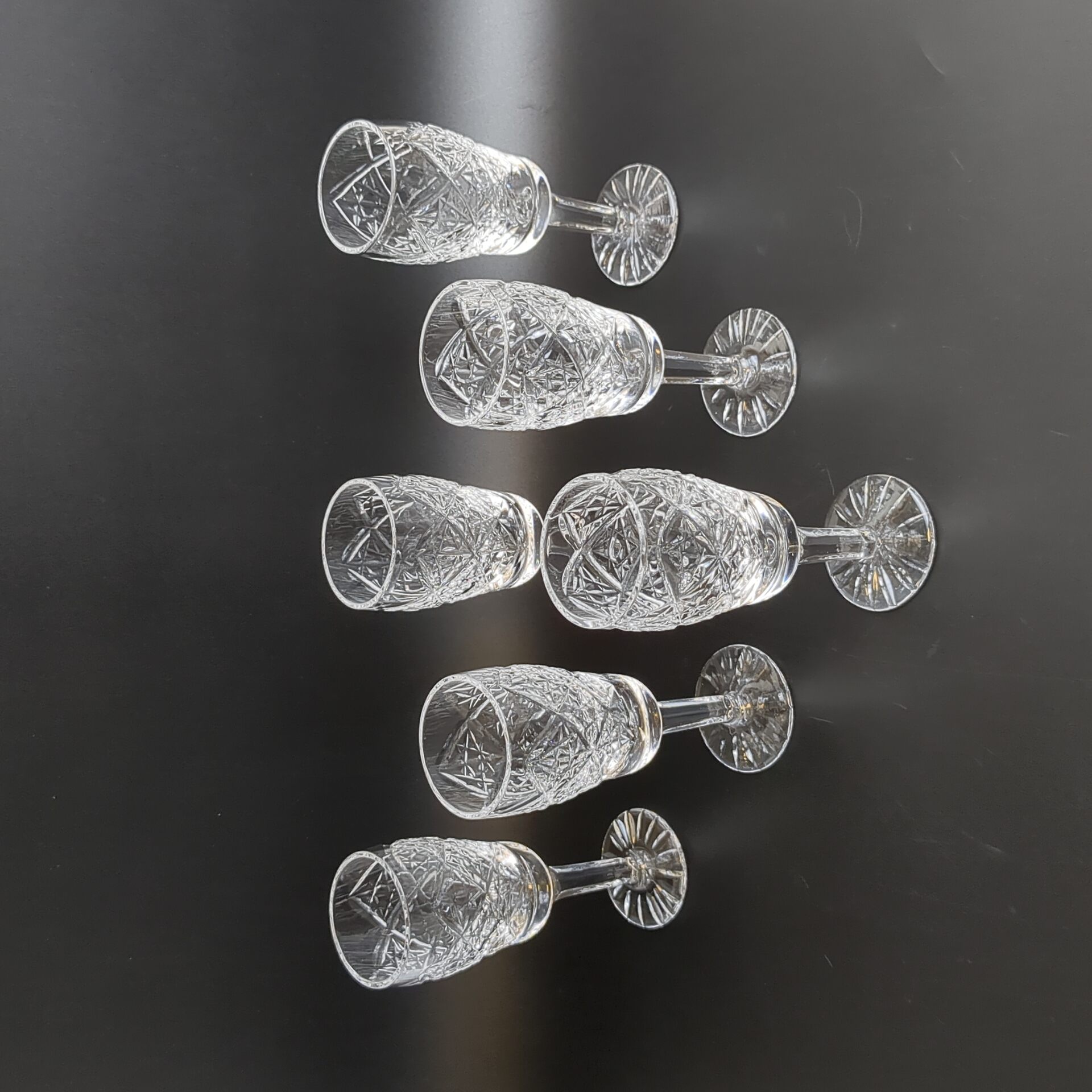 Изящный набор из 6 хрустальных рюмок - винтажная роскошь в вашем доме. Высота - 13 см. Состояние на фото.