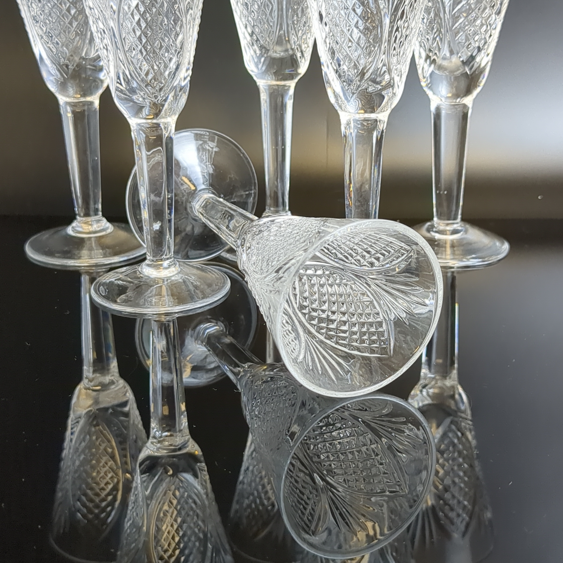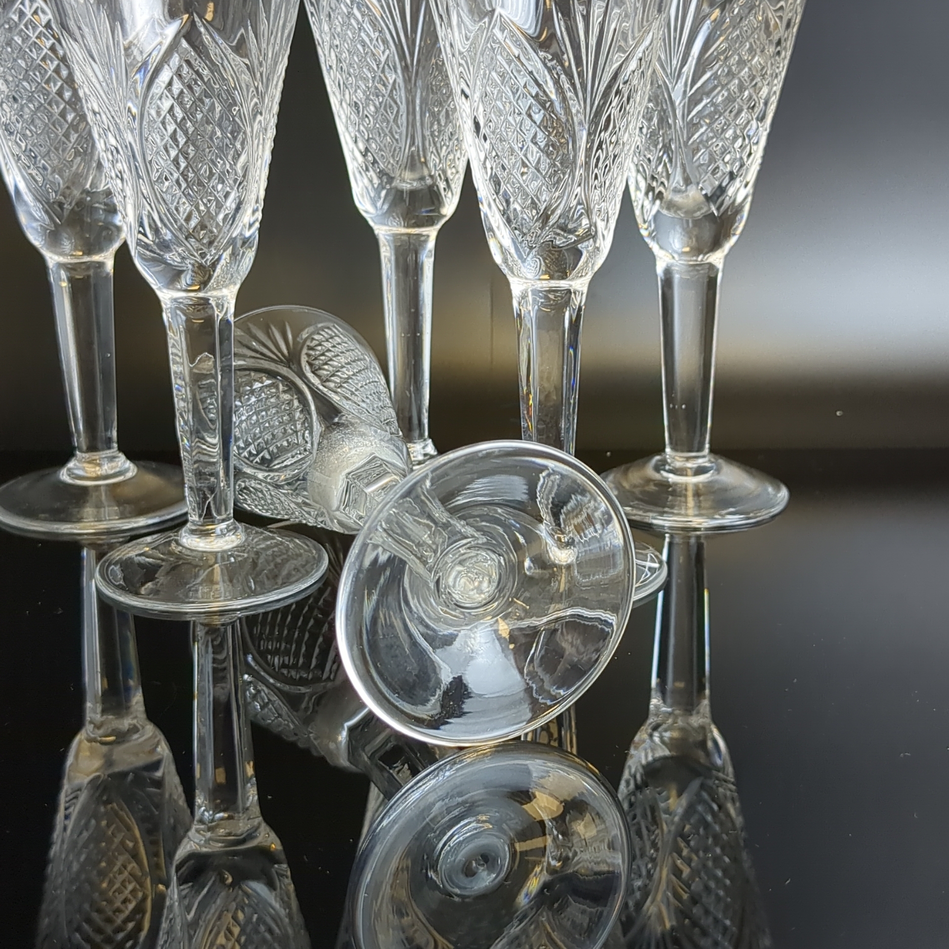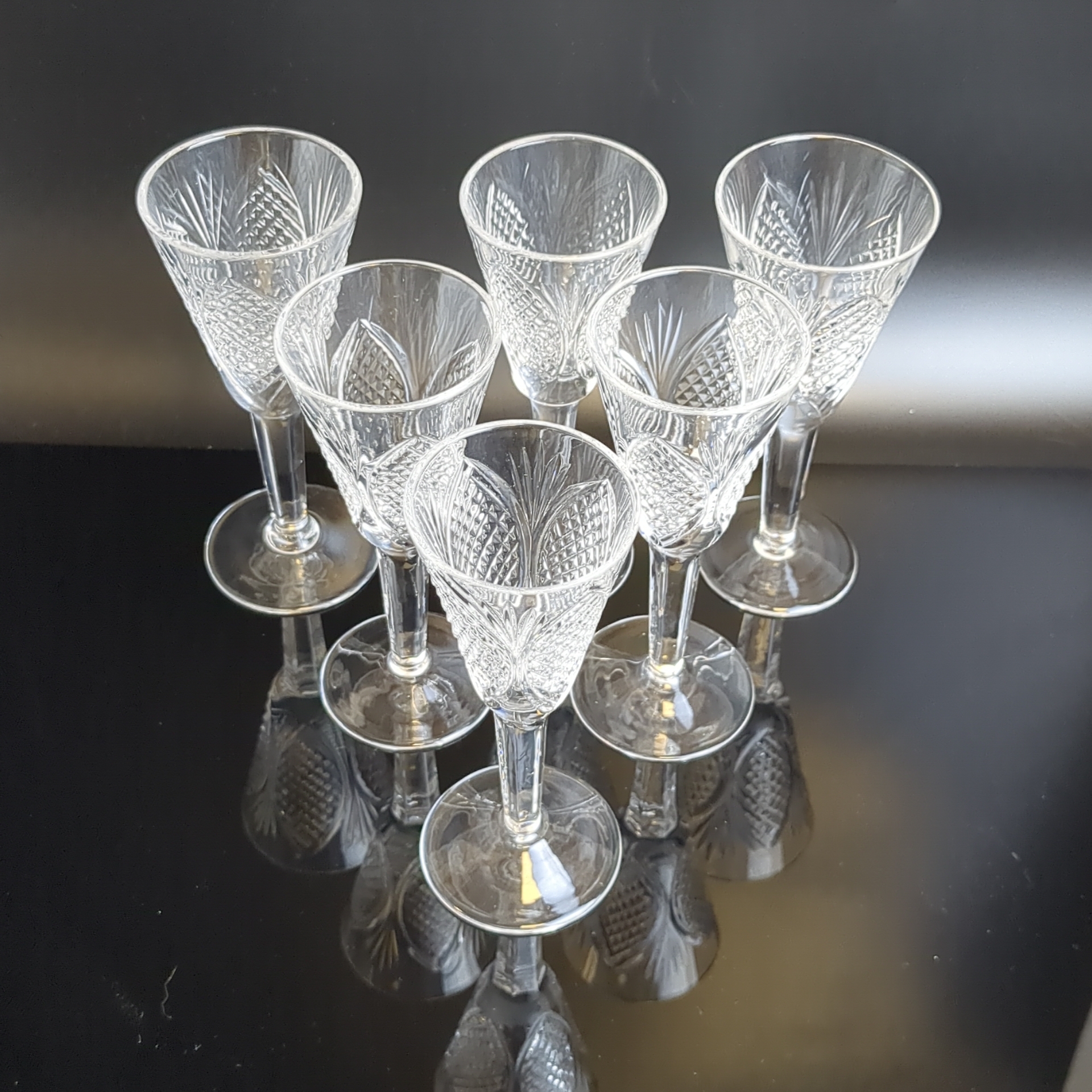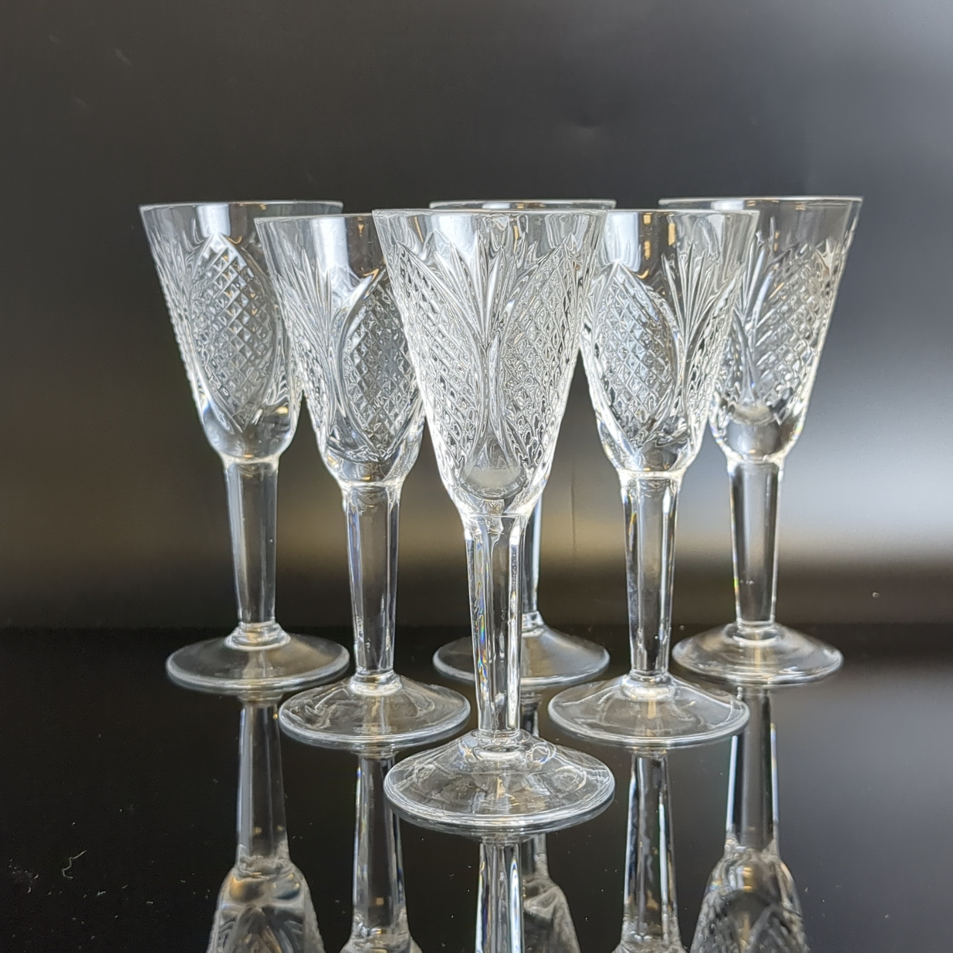 Рюмки набор из 6 штук хрустальные, изящная алмазная грань, геометрический орнамент, высота - 13.5 см, (объём -? мл), винтаж СССР 1970-1990 гг.