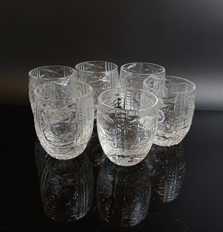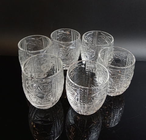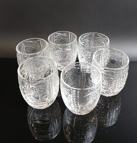 Рюмки, стопки хрустальные набор из 6 штук, алмазная грань, геометрический орнамент, 100 мл., винтаж СССР 1970-1990 гг. Высота - 7 см, диаметр - 5 см. Присутствуют следы использования - состояние на фото