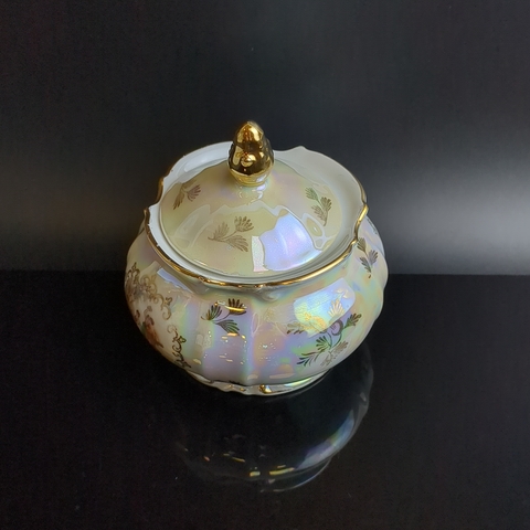 Сахарница фарфоровая из сервиза Мадонна Германия, ГДР из периода СССР: винтажная роскошь в вашем доме! Высота - 11.5 см. Состояние на фото.