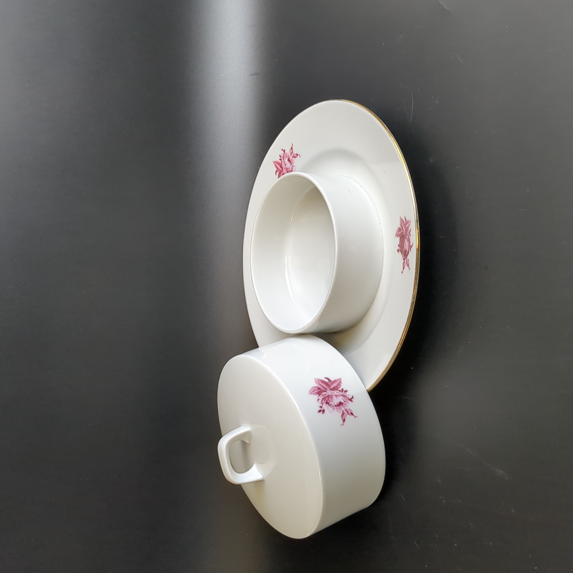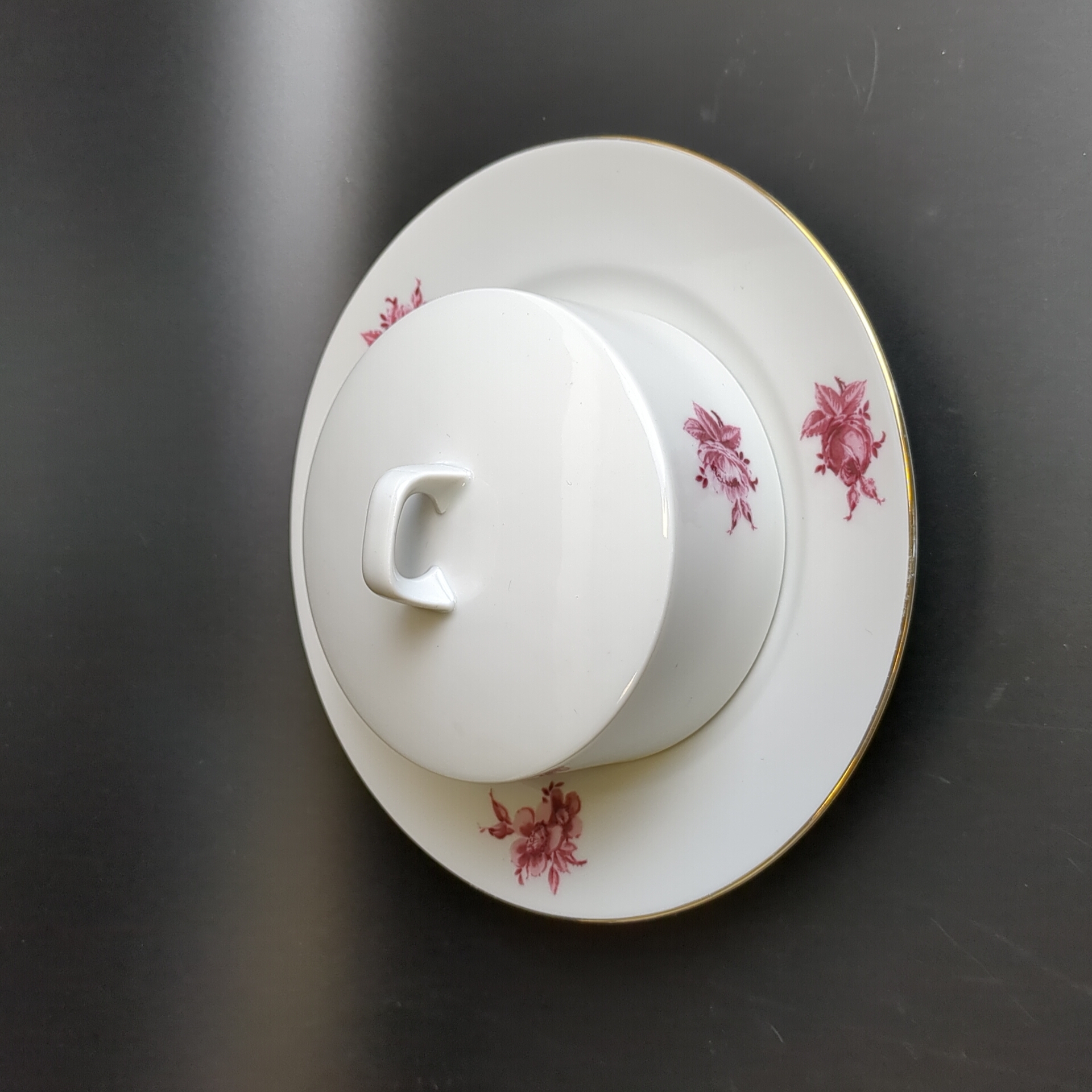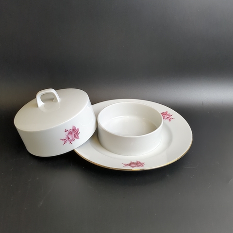 Сахарница фарфоровая, клеймо Graf Von Henneberg Porzellan, 1777 Jlmenau, Германия, роспись цветы, золочение, винтаж 1973-1977 гг. Диаметр - 19 см. Высота - 8.5 см. Состояние и комплектация на фото