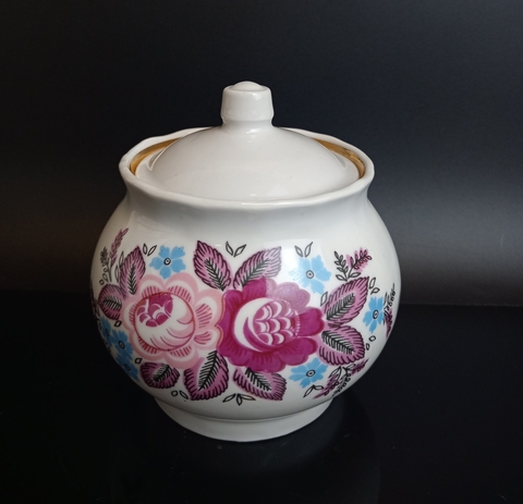 Сахарница фарфоровая клеймо Прокопьевский ФЗ, роспись, цветы, винтаж СССР 1976- 1980-е гг. Присутствуют следы использования - состояние на фото