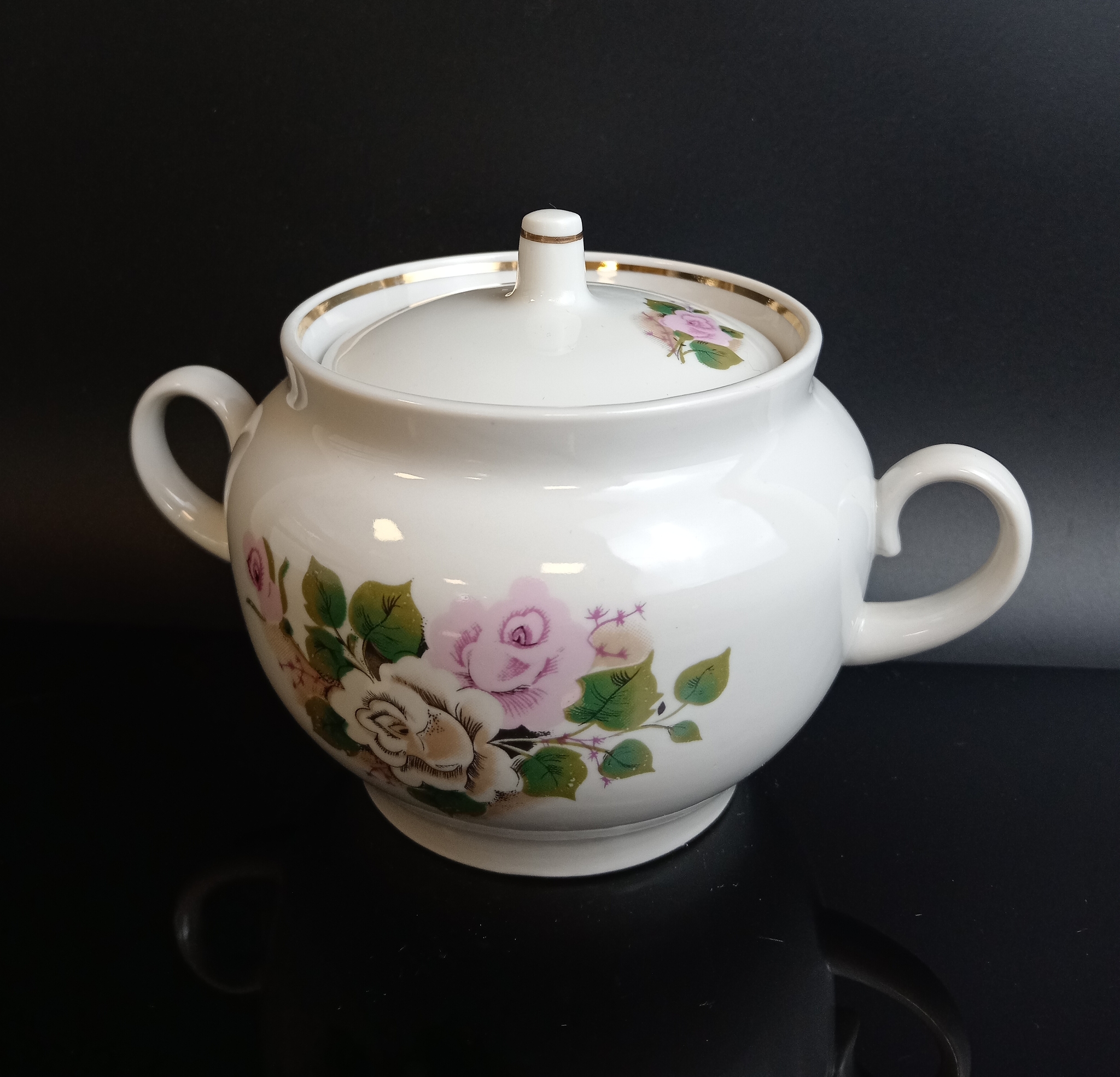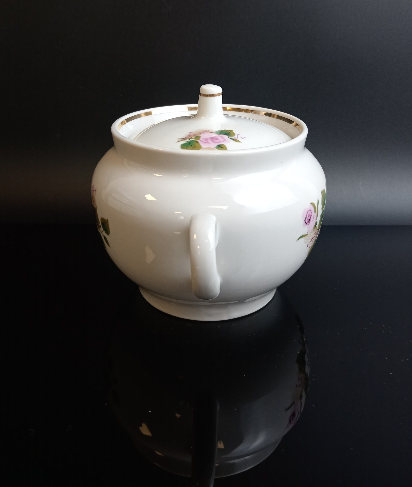 Сахарница фарфоровая роспись цветы розы, позолота, клеймо Красный фарфорист, винтаж СССР 1971-1991 гг. Высота - 10.5 см. Присутствуют следы использования - состояние на фото