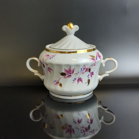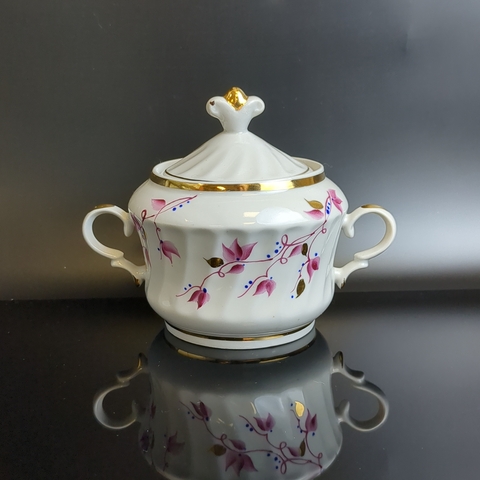 Сахарница из фарфора 1960-х годов – прекрасное дополнение в кухонный интерьер. Изделие ручной работы украшено изящной росписью цветов , клеймо «Чайка» (Краснодар), декорировано благородной золотой отделкой. Встроенная история, элегантность дизайна, качество советского периода придадут вашему интерьеру нотки изысканности и винтажного стиля. Состояние на фото