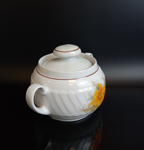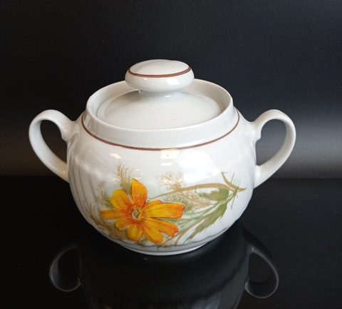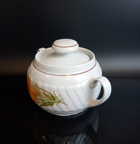 Сахарница фарфоровая цветы роспись, клеймо Минский ФЗ, винтаж СССР 1968-1983 гг. Присутствуют следы использования - состояние на фото