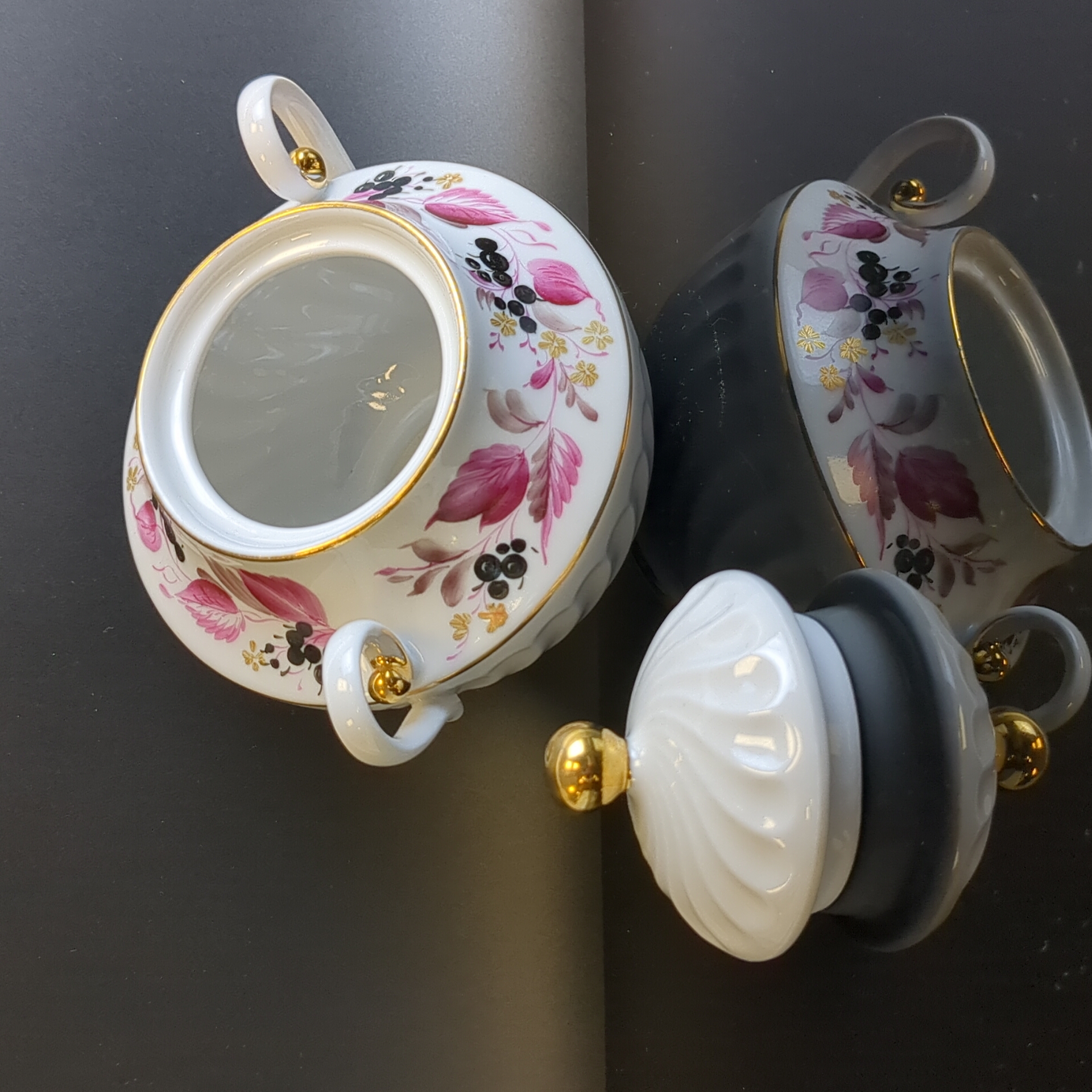 Сахарница ЛФЗ - Чёрная смородина - фарфор - СССР