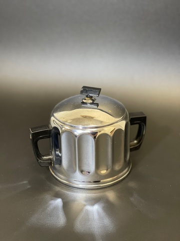 Сахарница была изготовлено на Кольчугинском заводе цветных металлов в СССР в 1970-е годы
