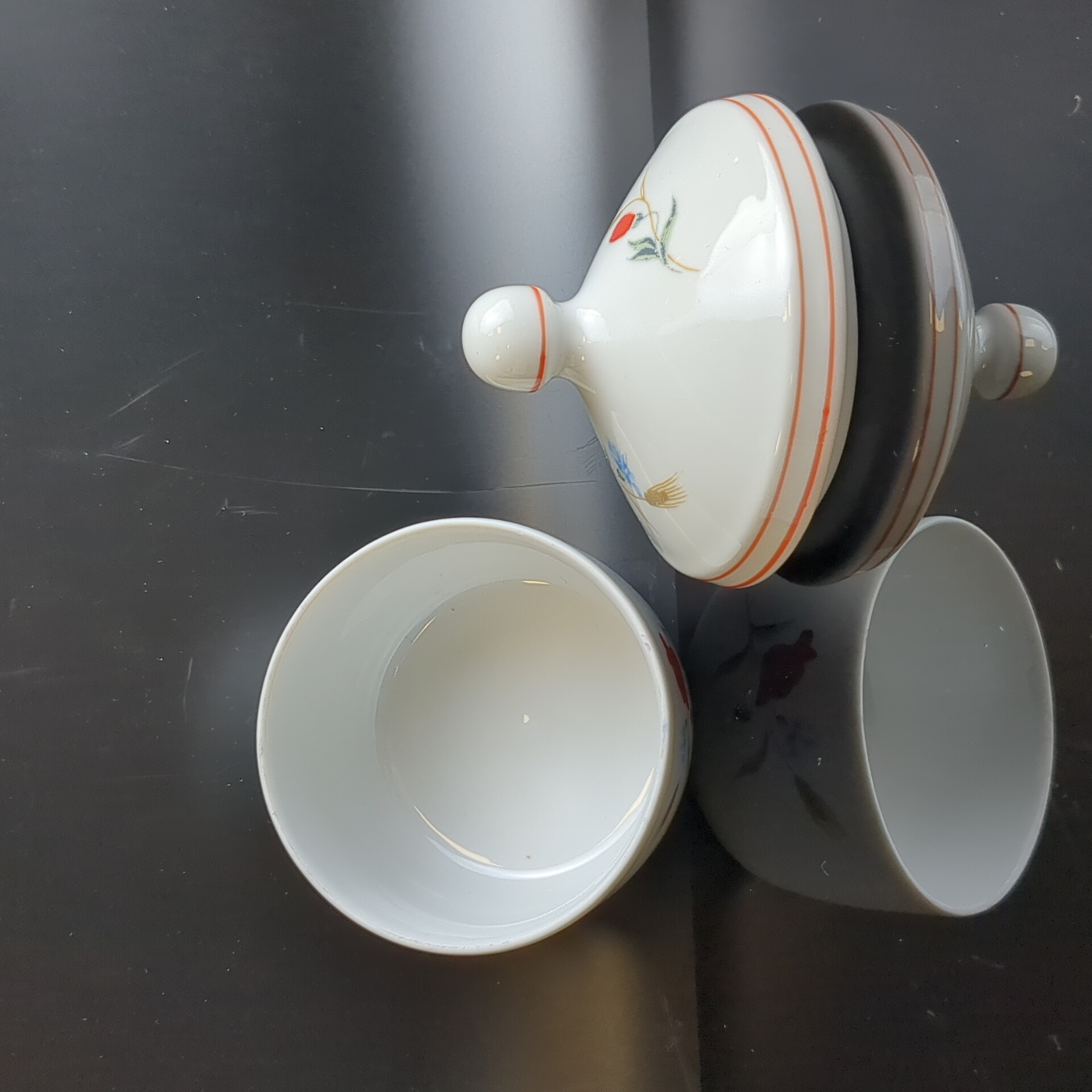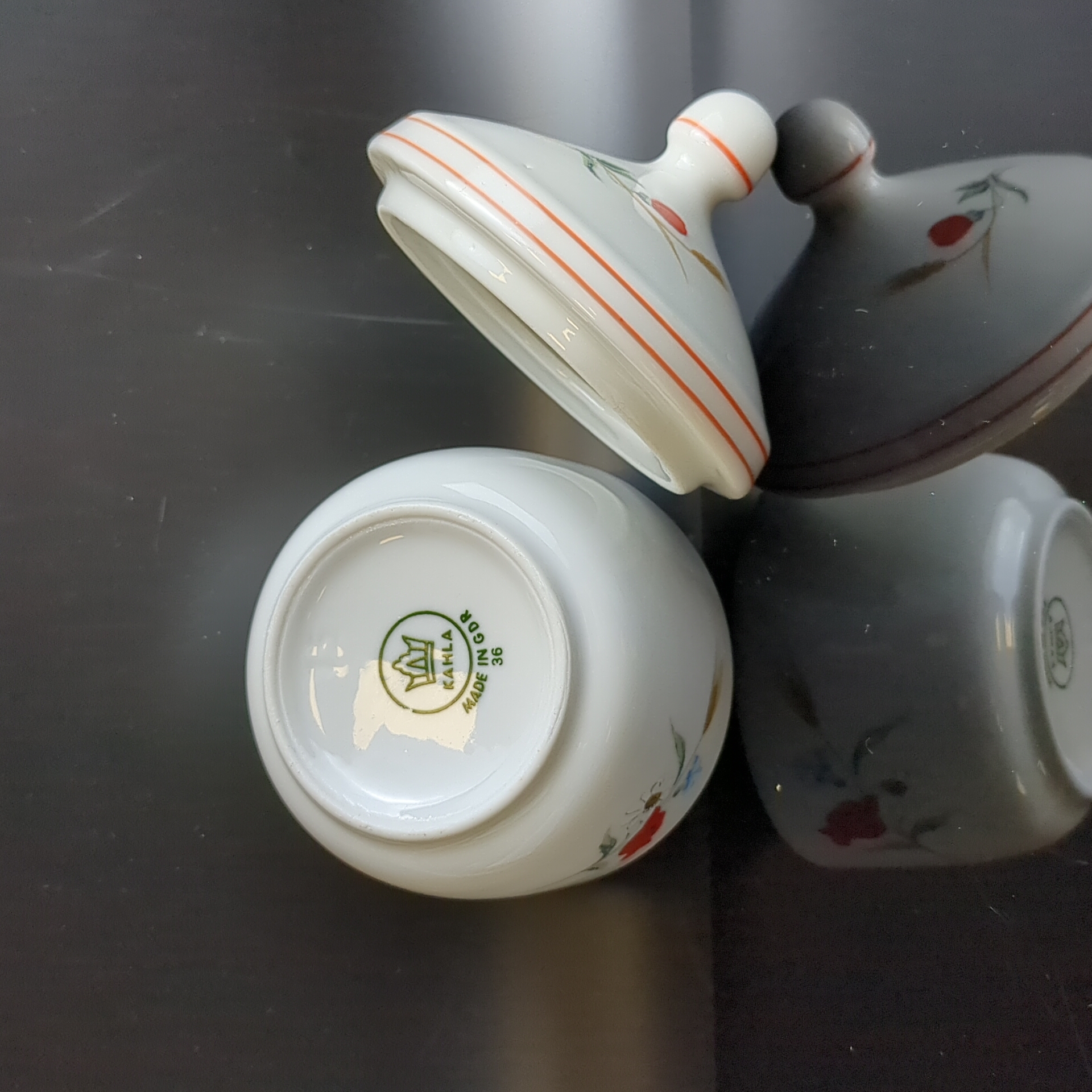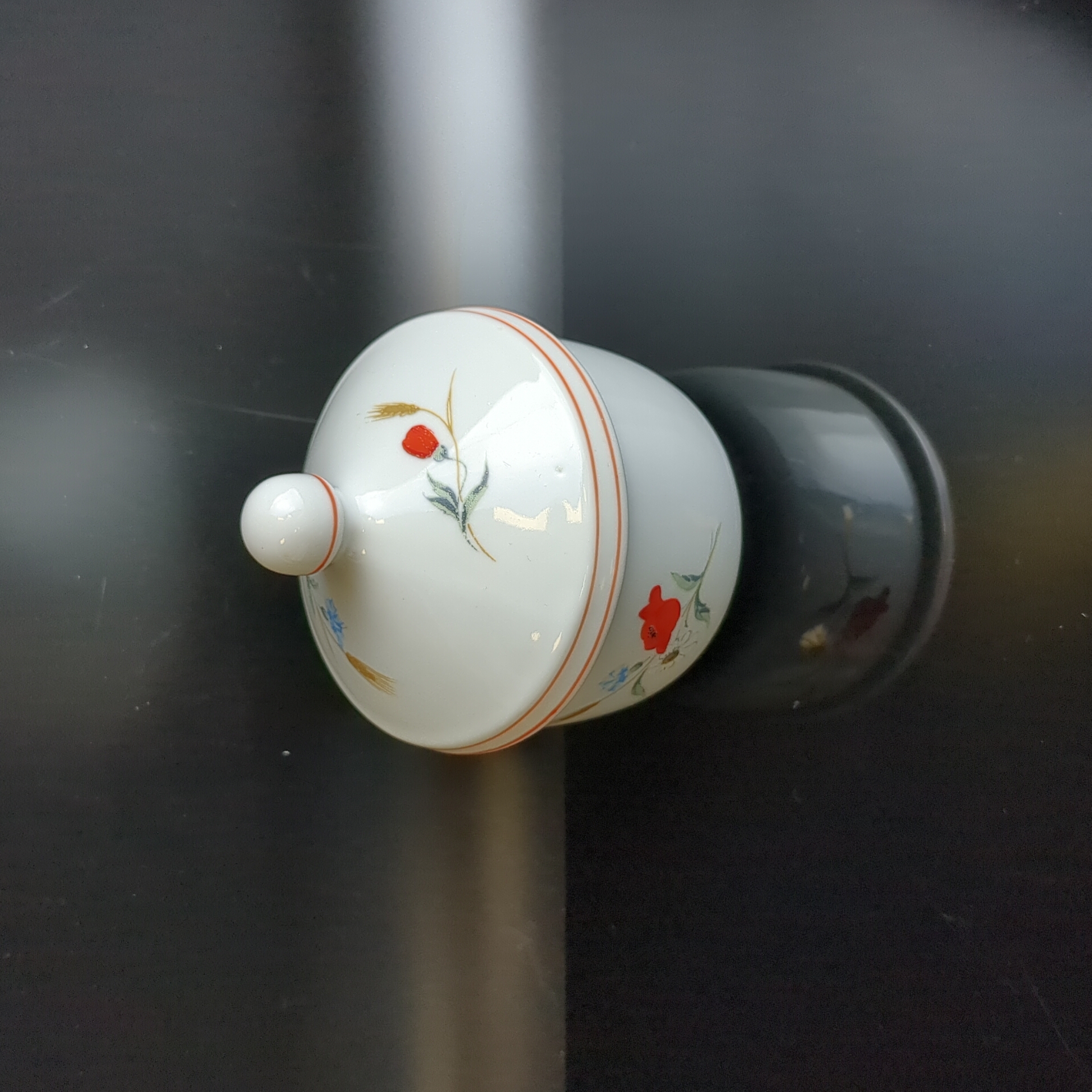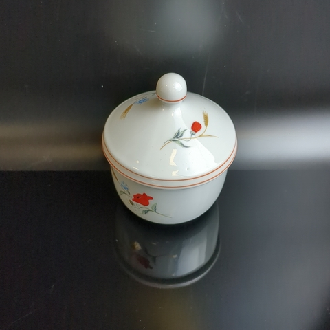 Сахарница с крышкой фарфоровая Kahla ГДР, роспись "Полевые цветы", высота - 10 см, винтаж времён СССР Германия. Состояние на фото