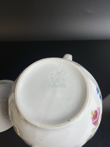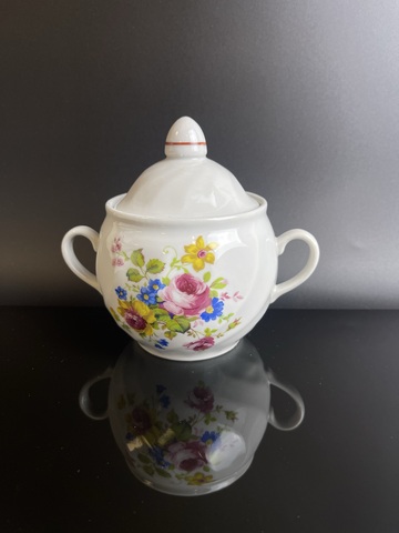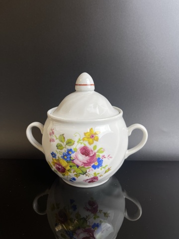 Сахарница винтажная клеймо Полонский ФЗ, фарфор, цветы, СССР 1980-1990 гг. Высота - 12.5 см. Сервантное хранение - состояние на фото