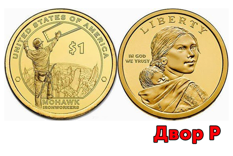 1 доллар. Сакагавея-Индианка 2015 г. "Строительство небоскрёбов" (двор P)