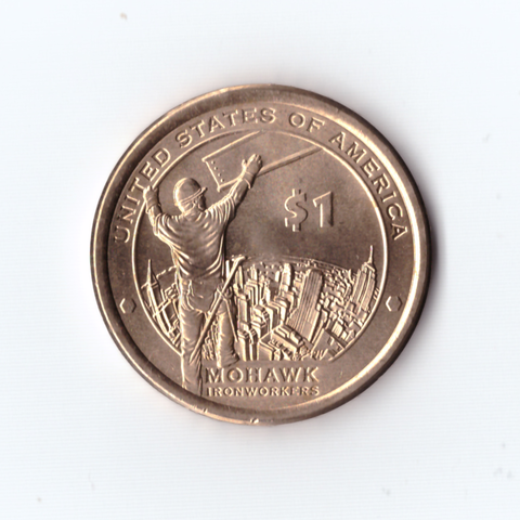 Аверс: Индеец из племени Mohawk (мохоки, могауки, мохавки, могавки) на строительстве небоскреба в Нью-Йорке.