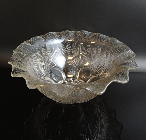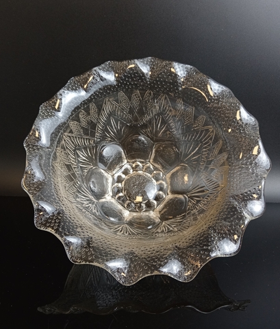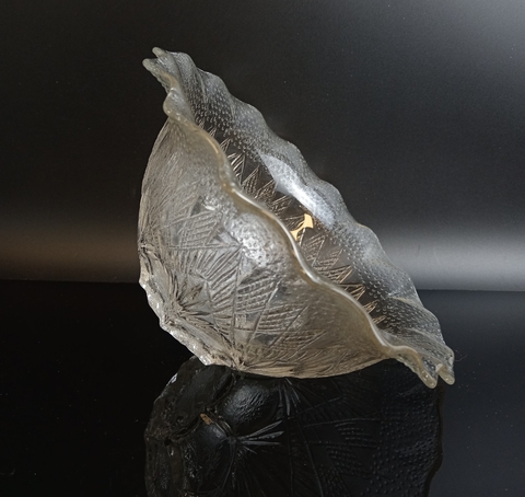 Салатник ажурный с резным декором стекло, растительный орнамент, винтаж СССР 1970-1990 гг. Высота - 8 см, диаметр - 17 см. Присутствуют следы использования - состояние на фото