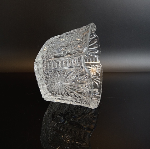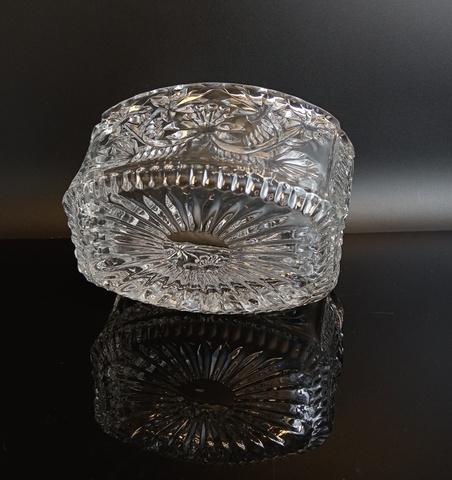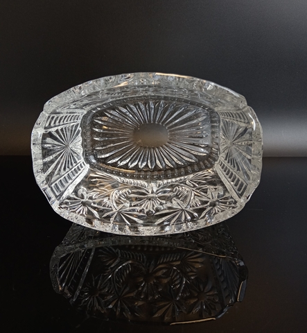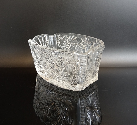 Салатник для слоёных салатов, хрустальный, алмазная грань, изящный цветочный орнамент, винтаж СССР 1970-1990 гг. Высота - 8 см, длина - 16.5 см. Присутствуют следы использования - состояние на фото.