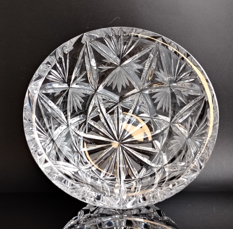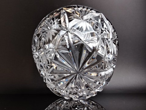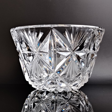 Салатник хрустальный, алмазная грань, объёмный геометрический орнамент, матовый хрусталь, винтаж СССР 1970-1990 гг. Высота - 10 см. Присутствуют следы использования- состояние на фото