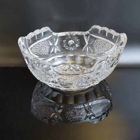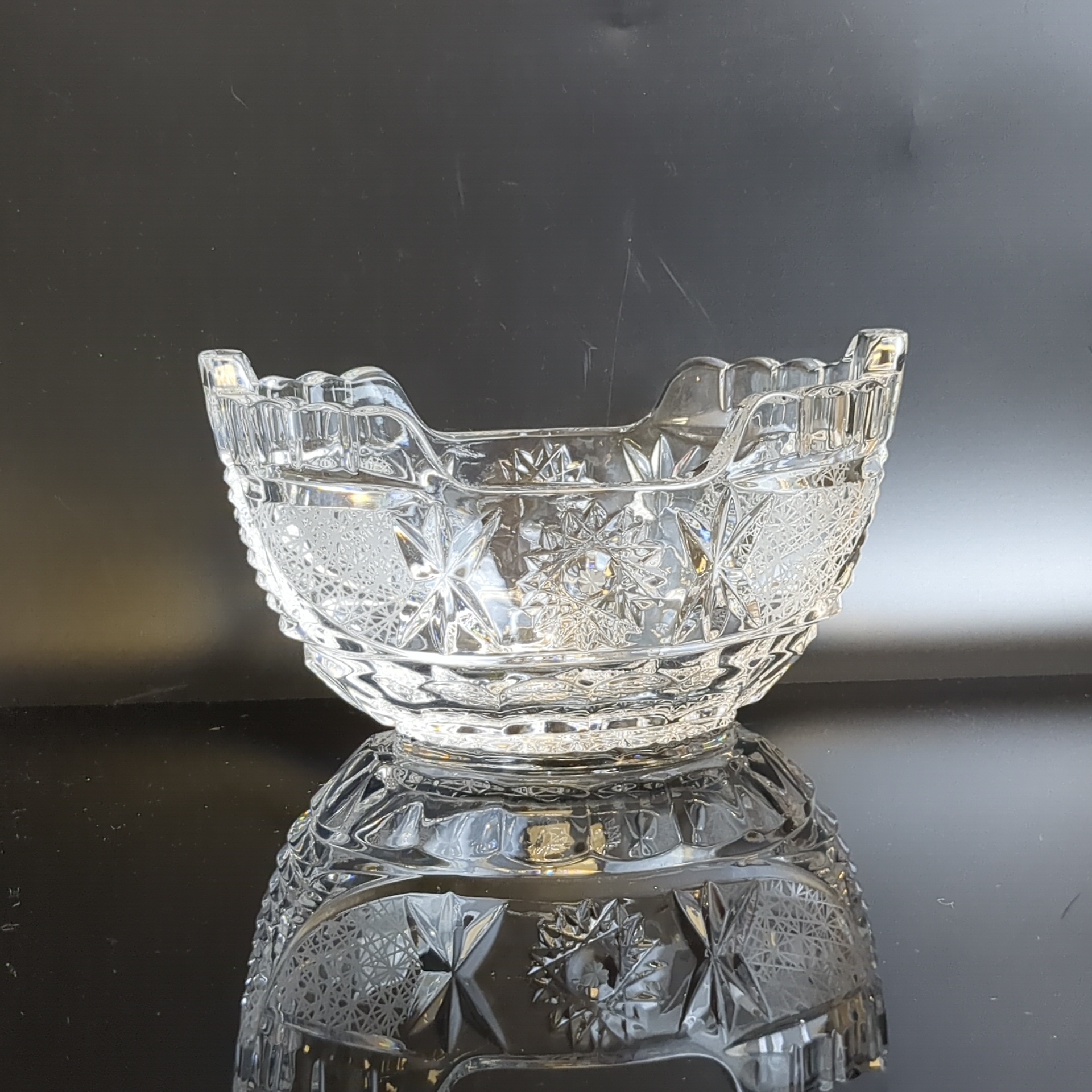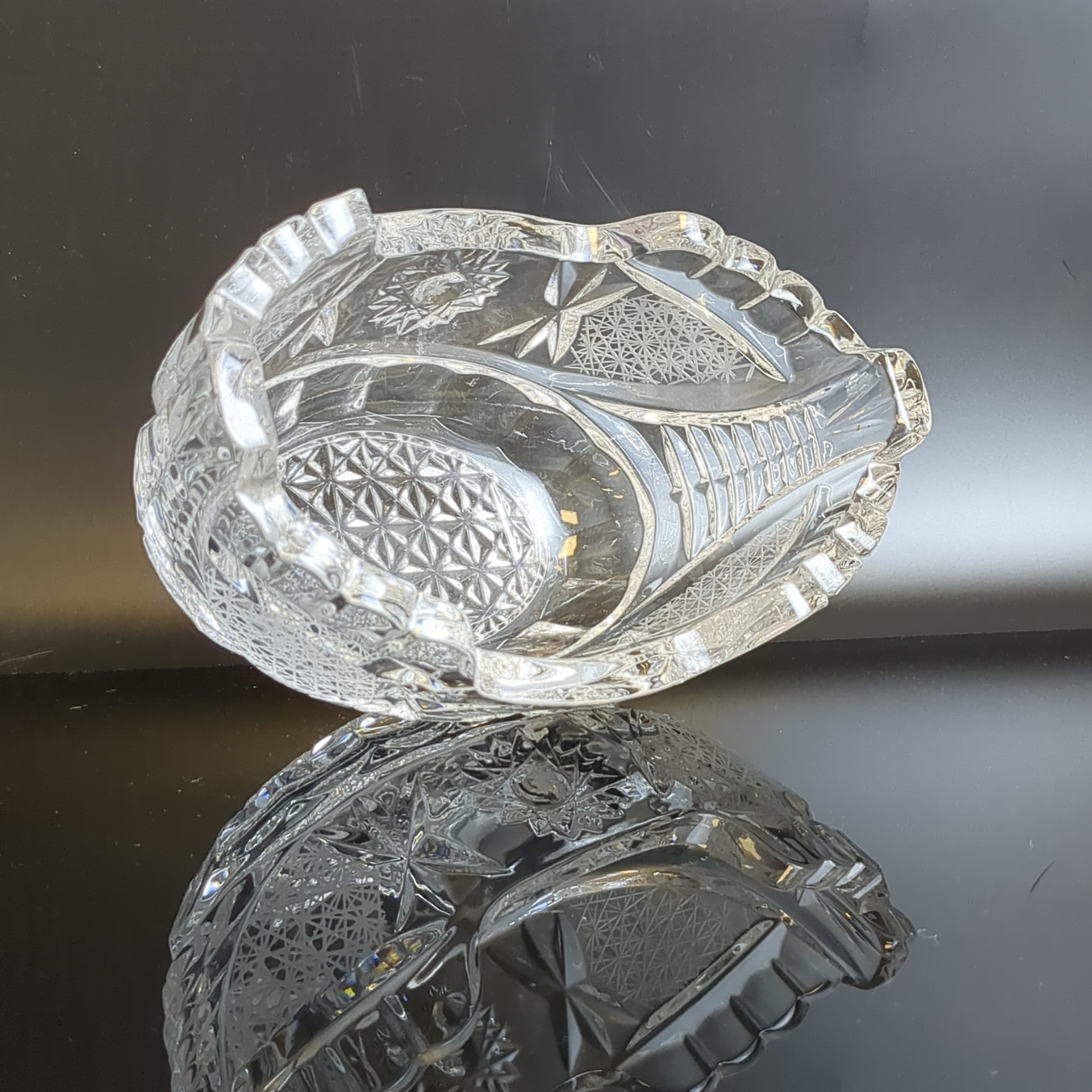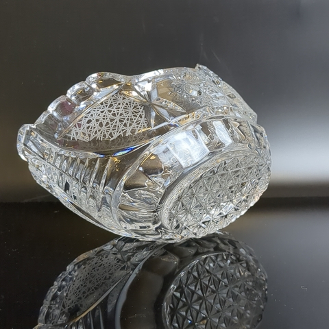 Салатник хрустальный алмазная грань, геометрический изящный орнамент, редкой формы, матовый хрусталь, винтаж времён СССР 1970-1990 гг. Высота - 9 см, длина - 15.5 см. Состояние на фото