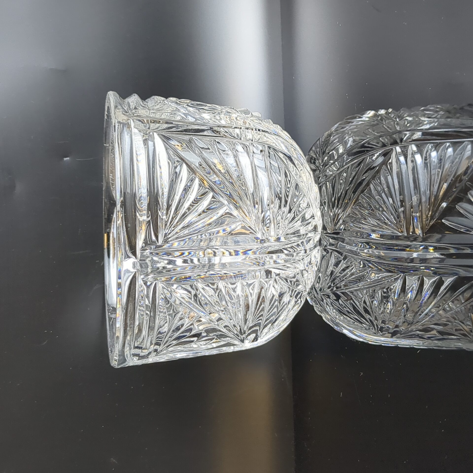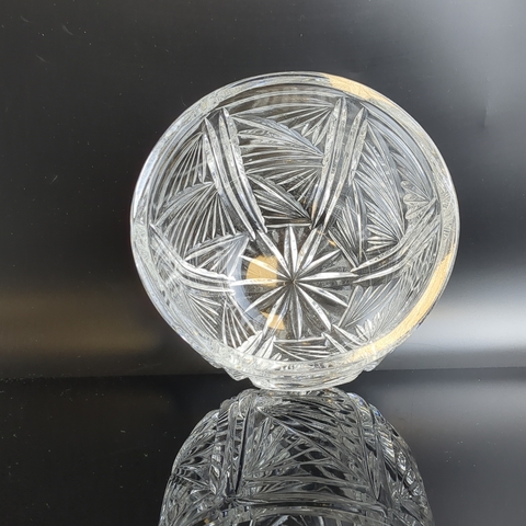 Салатник хрустальный алмазная грань, геометрический резной орнамент, винтаж СССР 1970-1990 гг. Высота - 11 см, диаметр верха - 14.5 см. Состояние на фото