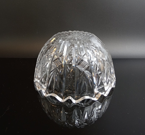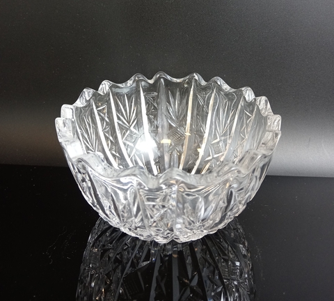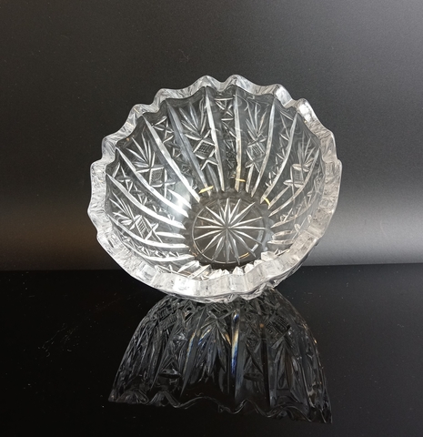 Салатник хрустальный алмазная грань, резные края, геометрический орнамент, винтаж СССР 1970-1990 гг. Высота - 8 см, диаметр - 14 см. Присутствуют следы использования - состояние на фото