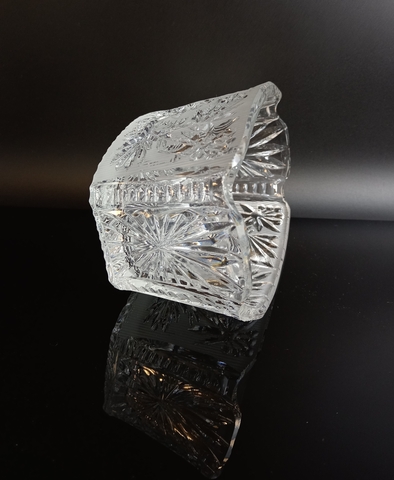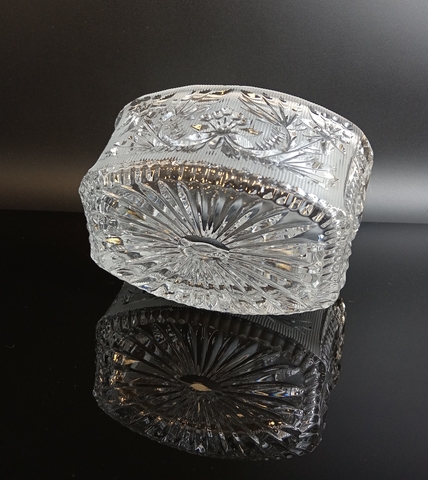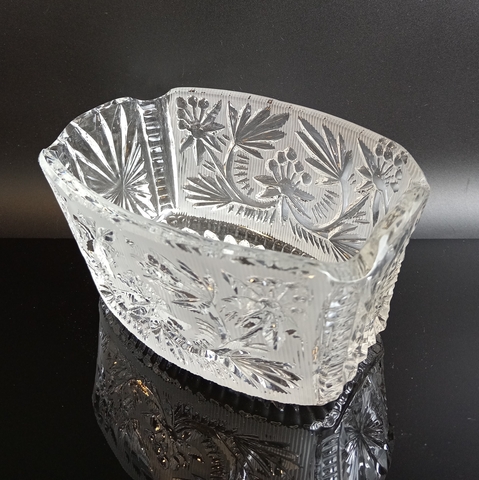 Салатник хрустальный алмазная грань, цветочный орнамент, матовый хрусталь, винтаж СССР 1970-1990 гг. Высота - 9 см, длина - 16 см. Присутствуют следы использования - состояние на фото