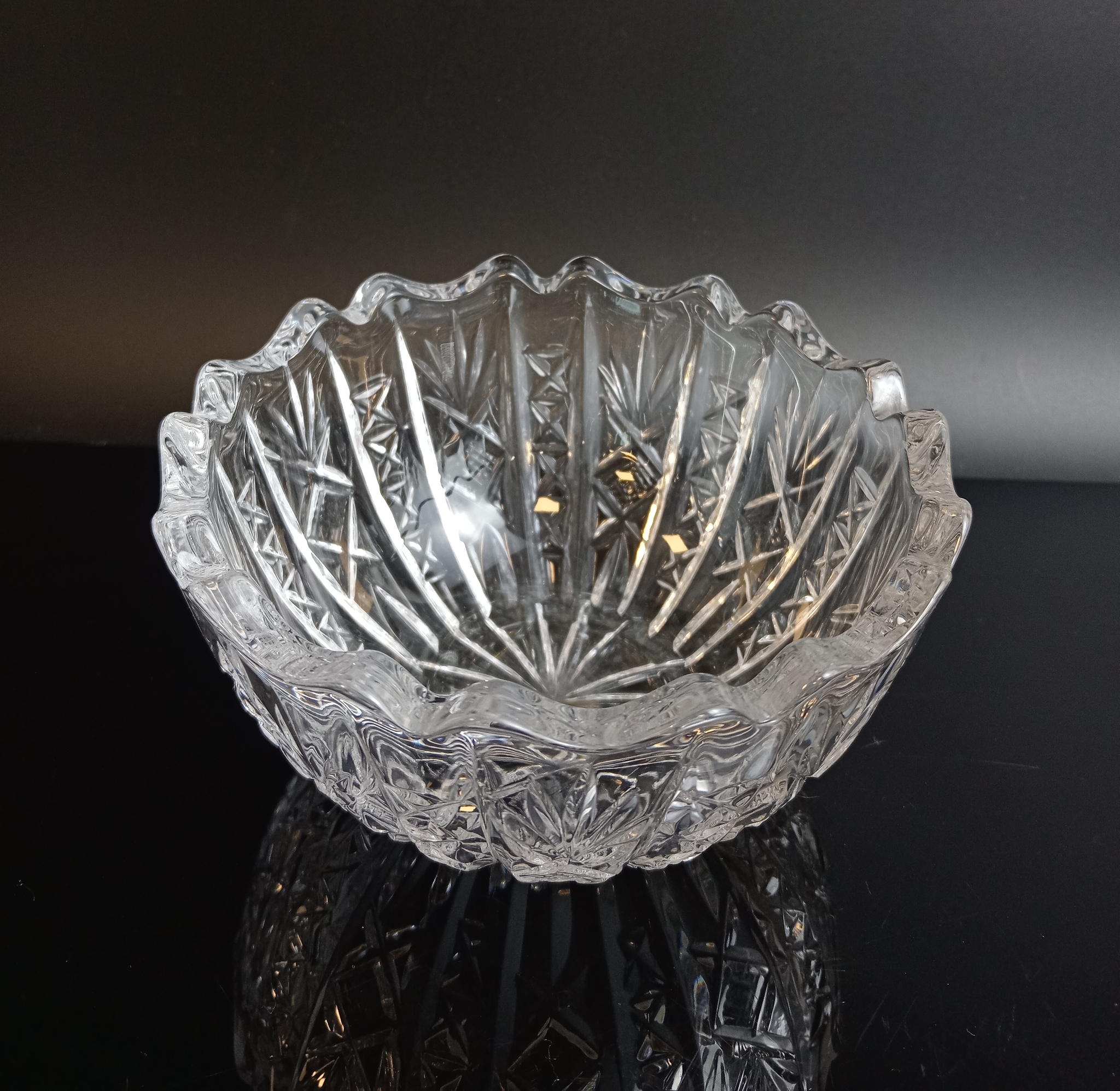 Салатник хрустальный, геометрический орнамент, винтаж СССР 1970-1990 гг. Высота - 7 см. Присутствуют следы использования - состояние на фото