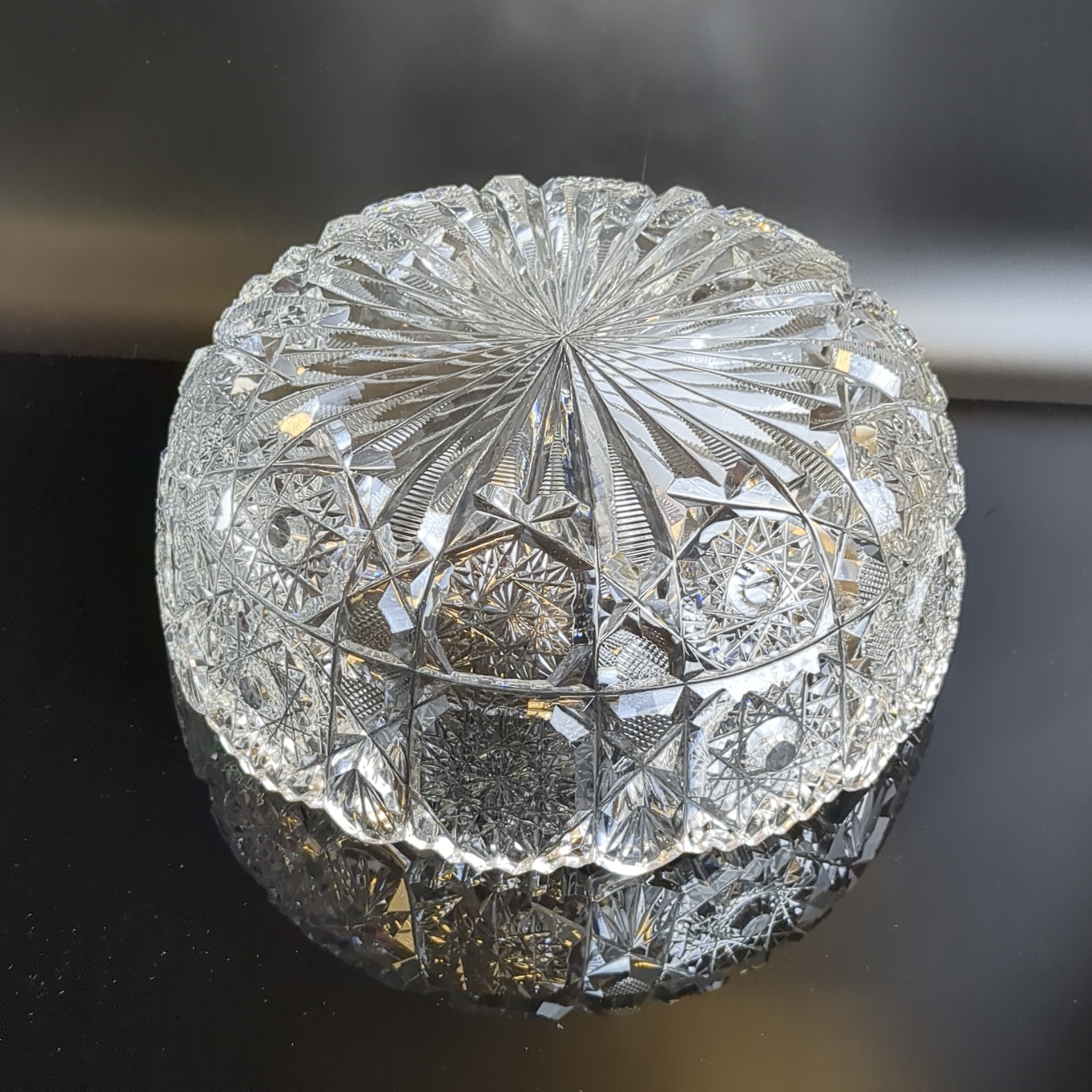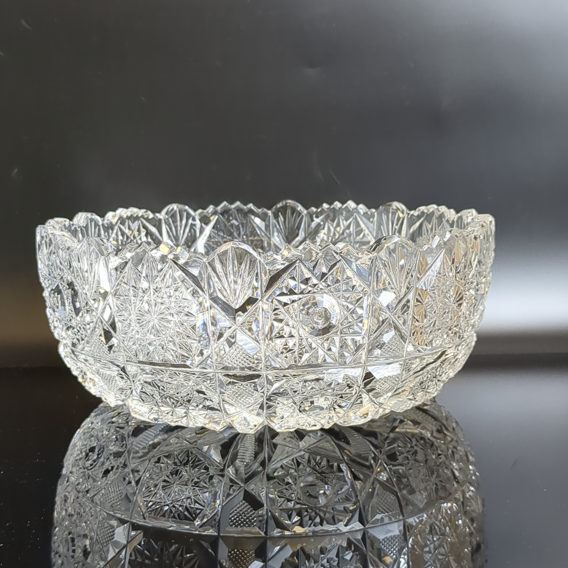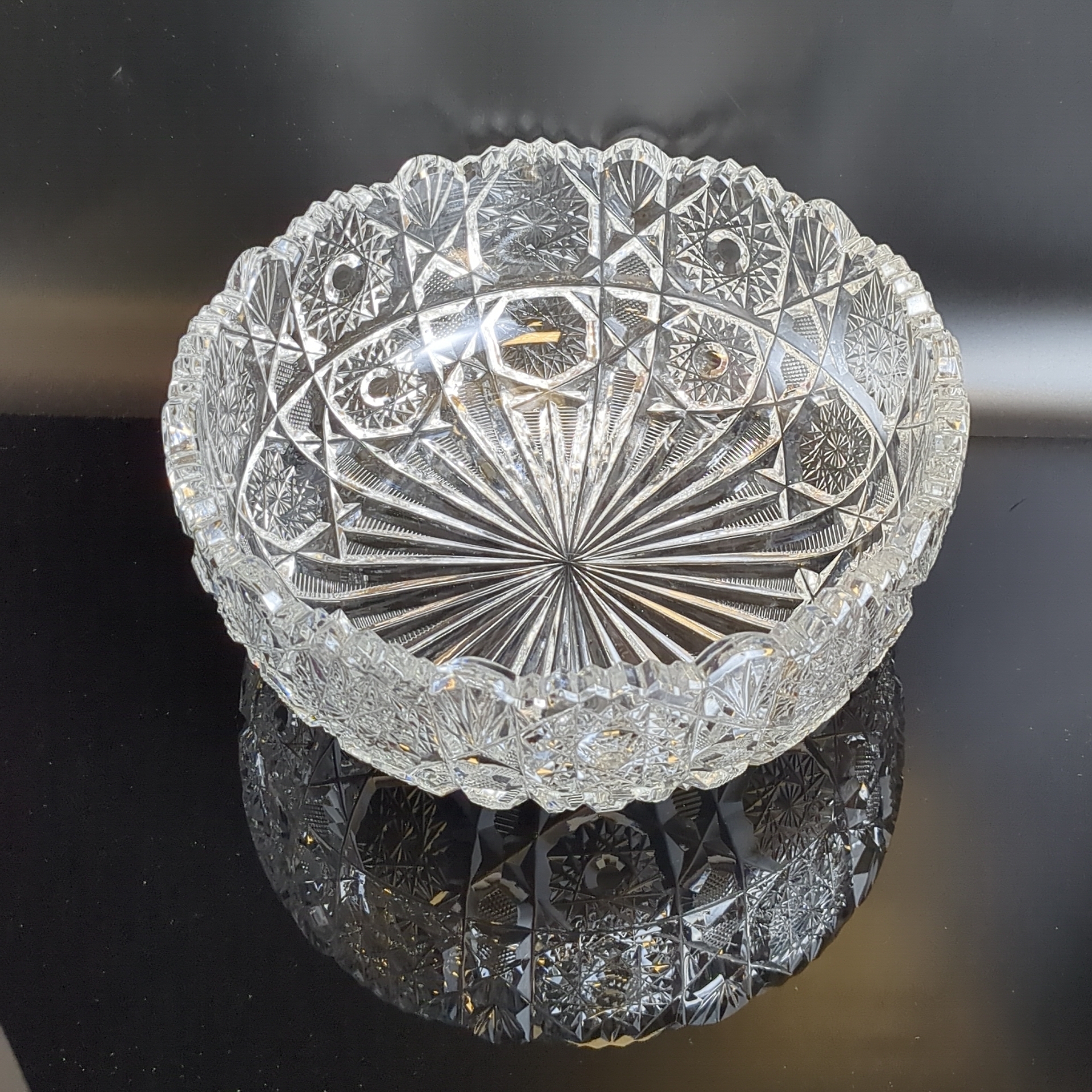Салатник хрустальный изящный орнамент, алмазная грань, D- 25 см, винтаж СССР 1970-1990 гг. Высота - 10 см. Состояние на фото