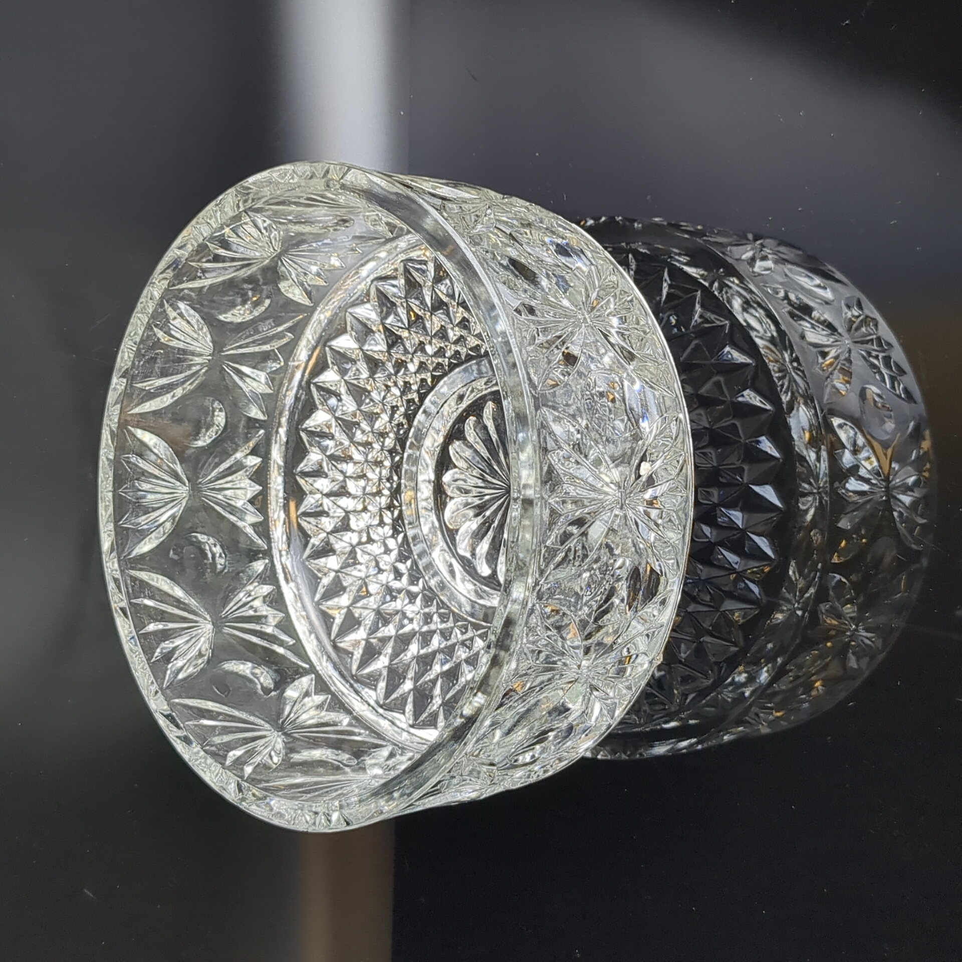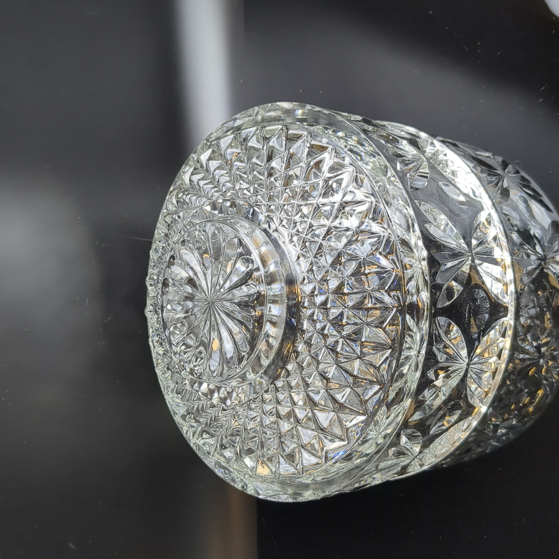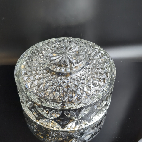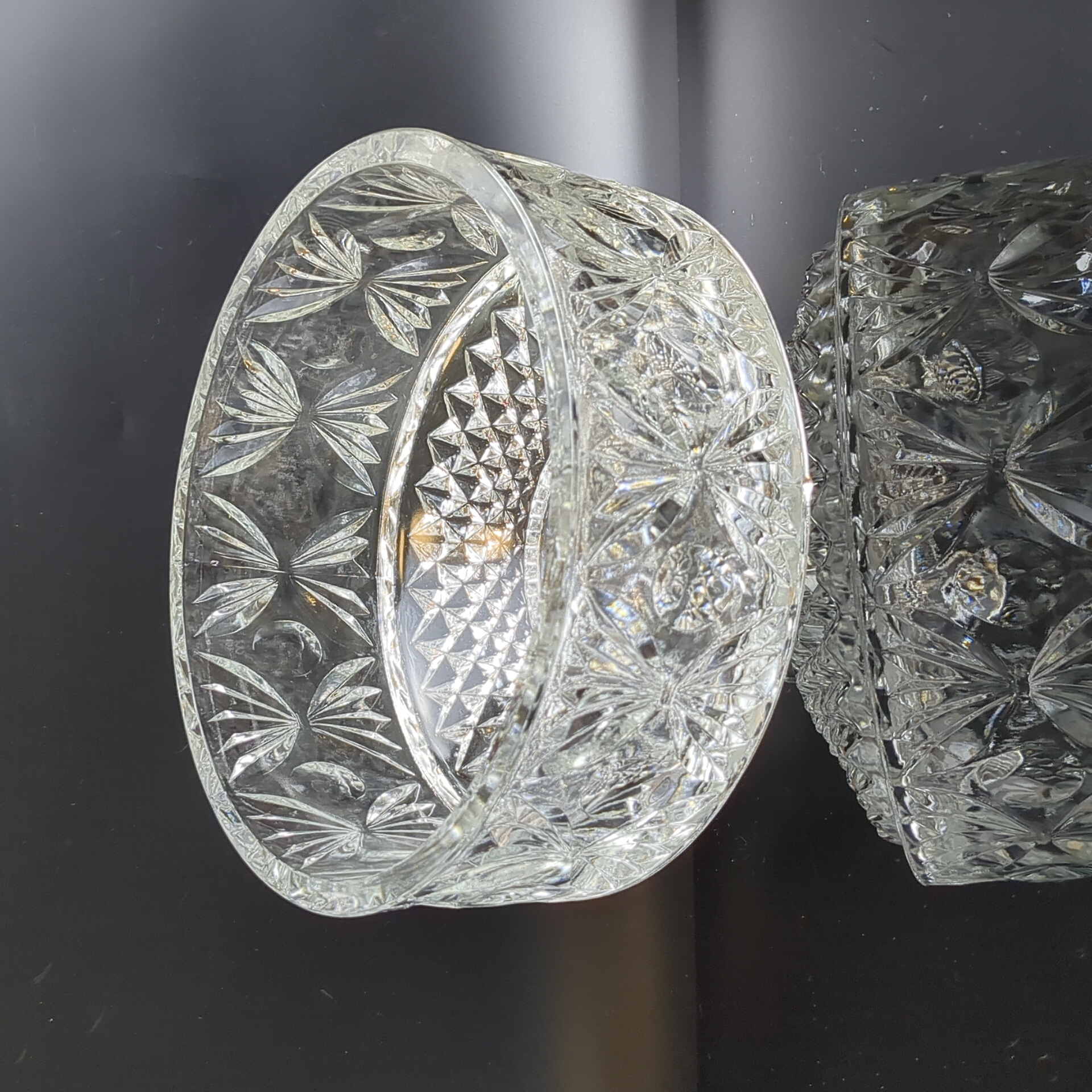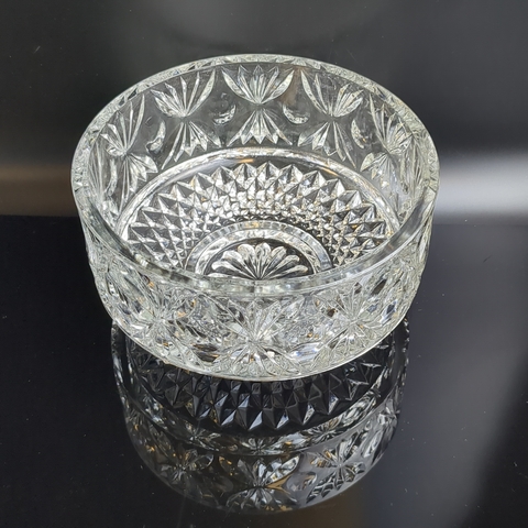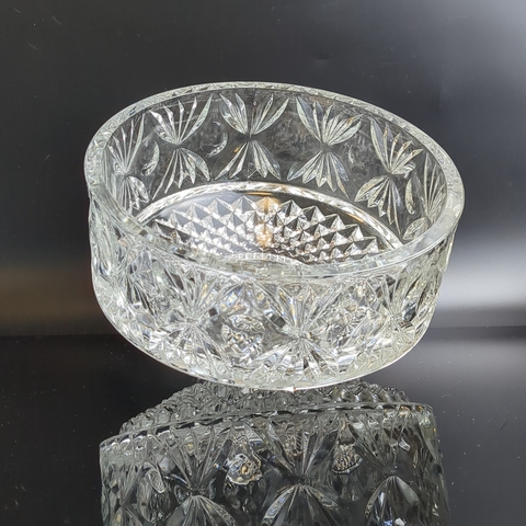 Салатник хрустальный с алмазной гранью, геометрическим орнаментом, резной декор, винтаж СССР 1970-1990 гг. Высота - 10 см, диаметр - 18.5 см. Состояние на фото