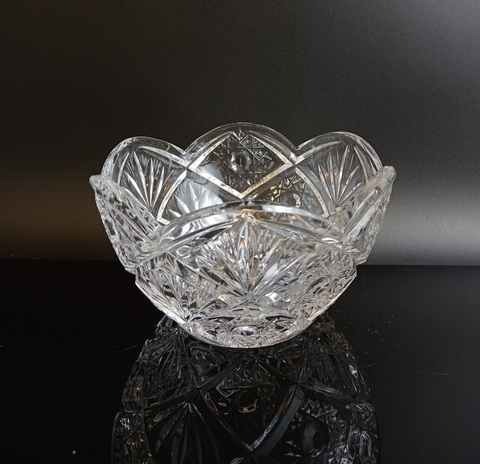 Салатник хрустальный с геометрическим узором , алмазная грань, винтаж СССР 1970-1990 гг Высота - 8.5 см, диаметр - 15 см. Присутствуют следы использования- состояние на фото
